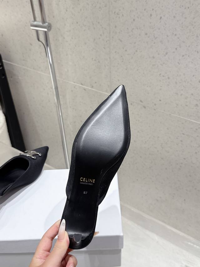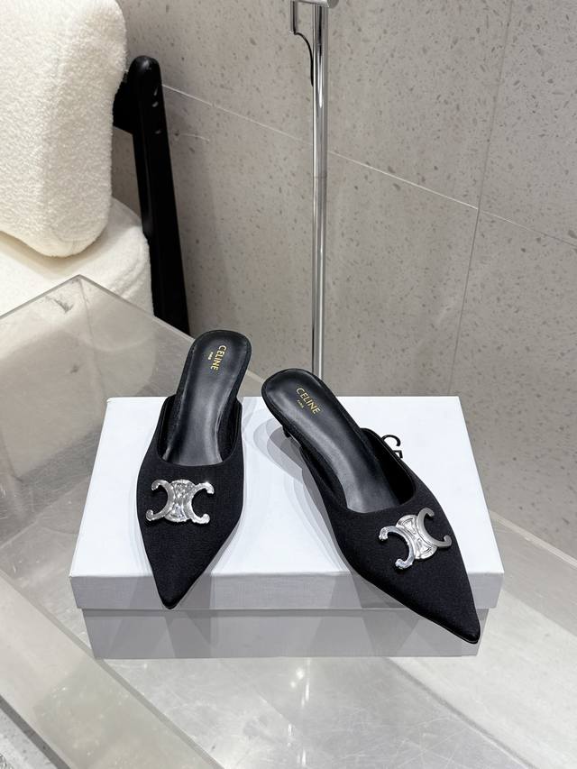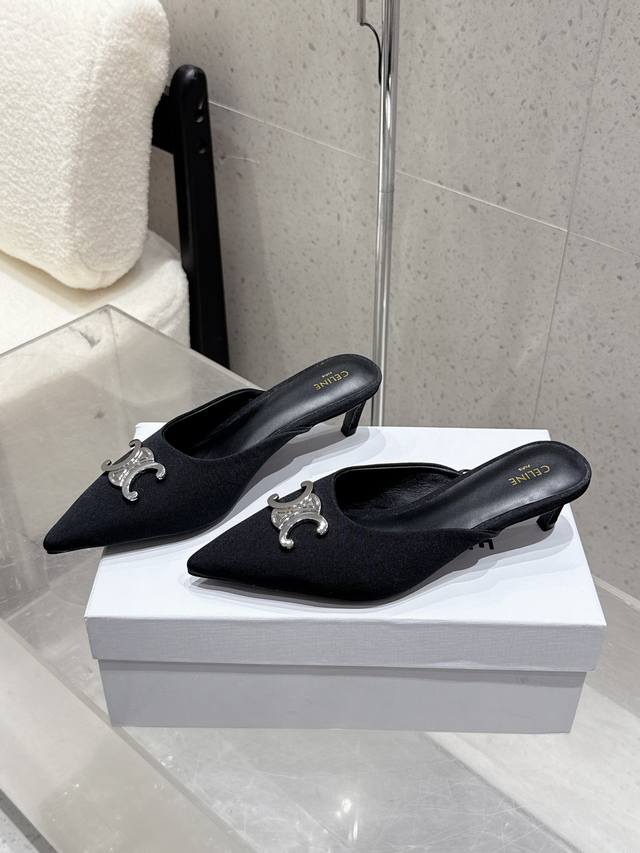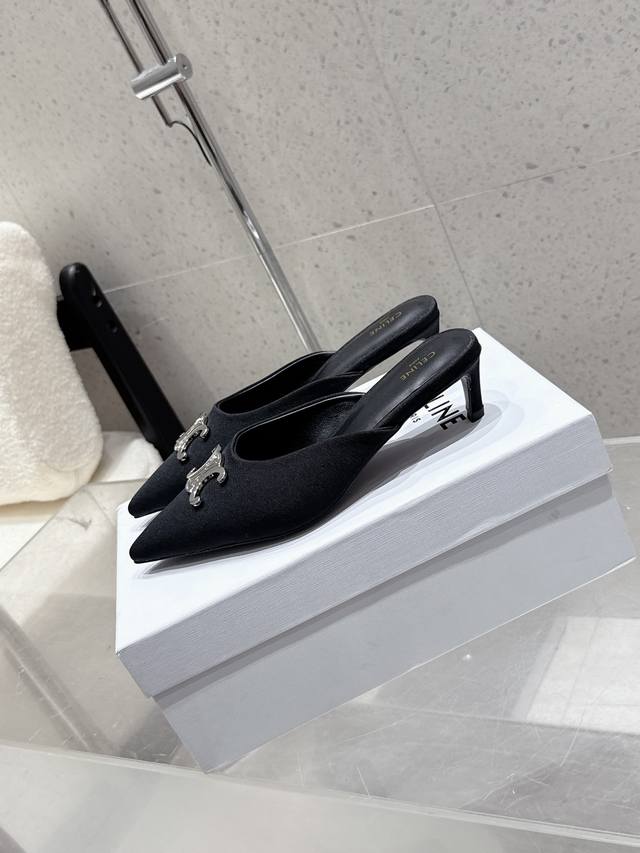 Celine思琳赛琳25新色新款凯旋门猫跟尖头凉拖鞋