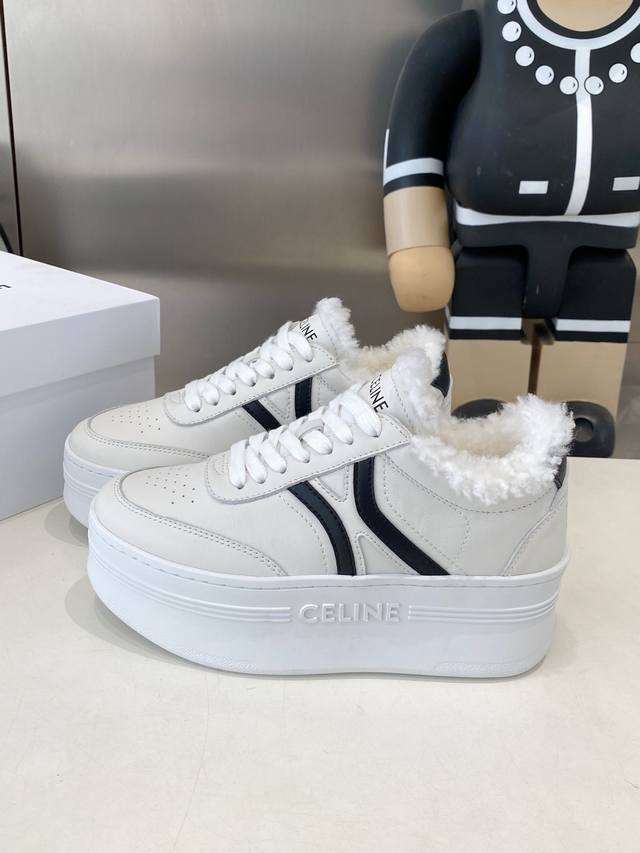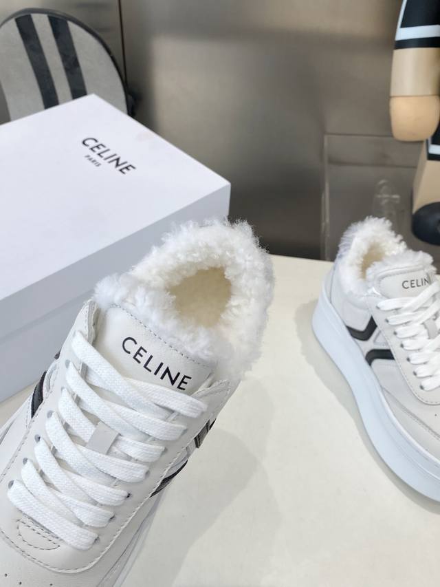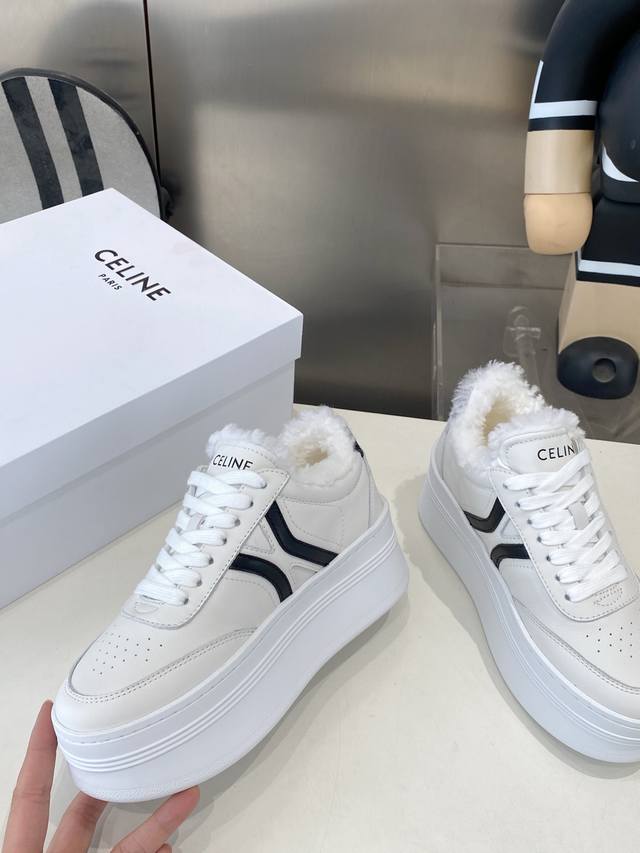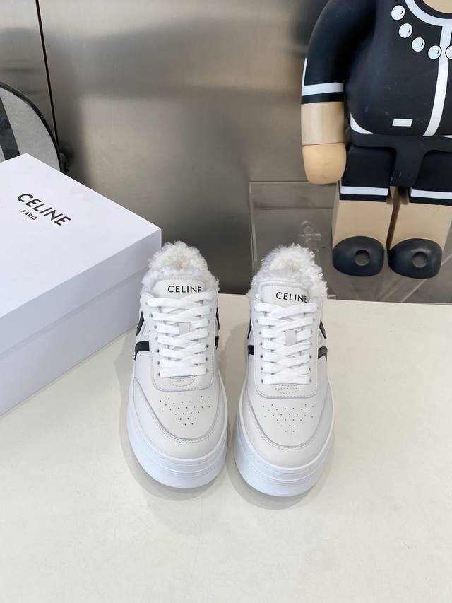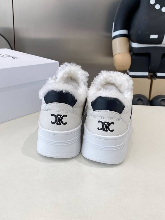 出厂 Celine 思琳赛琳 运动鞋厚底小白鞋毛里 2025春夏新款女凯旋门徽标系带,简单舒服,干净利落,增高显腿细,无论是单穿还是搭配阔腿裤,高街又复古一起来