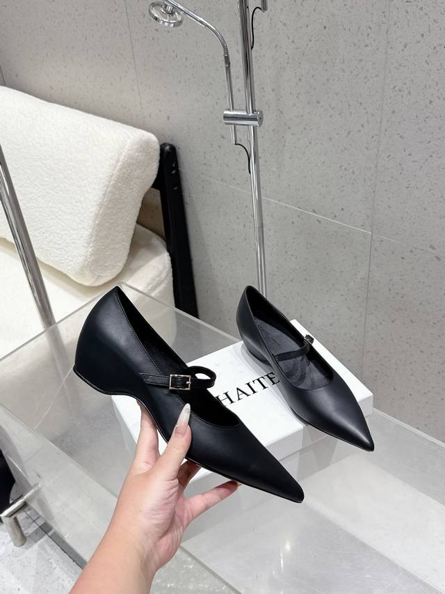 / 出厂 Khaite25秋冬新款复古坡跟一字带玛丽珍尖头单鞋! 极简前卫、锋利和无畏的设计,让Khaite近年响亮时尚界。短短几年间已经成为最受欢迎的服装品牌之一