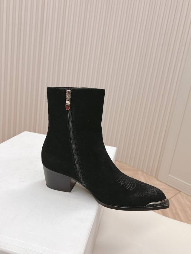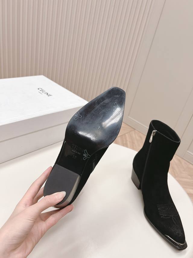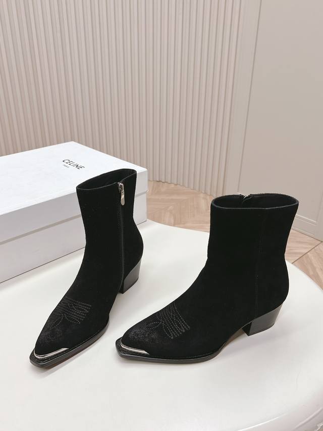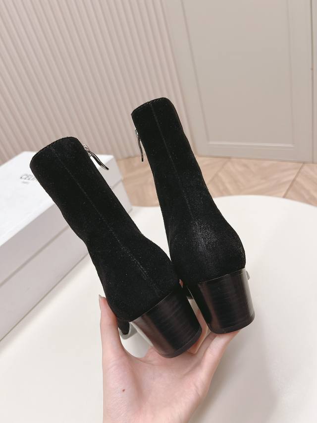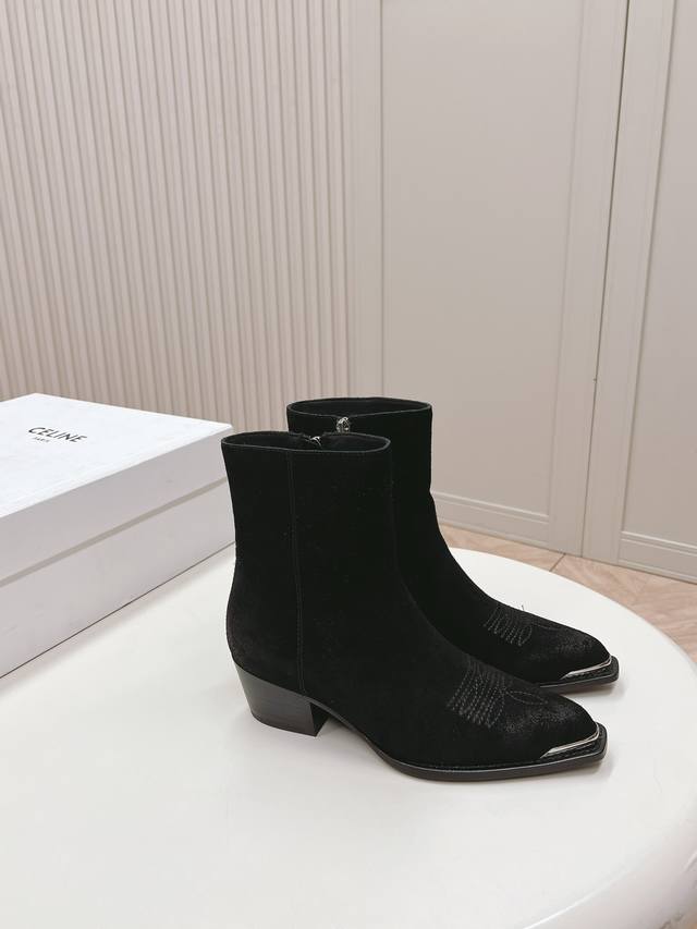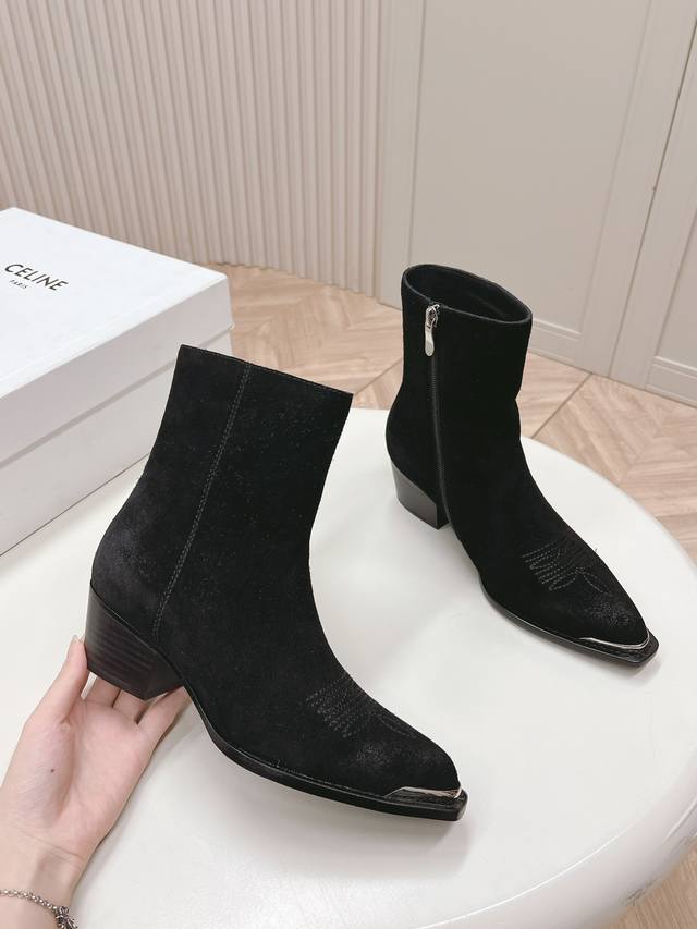 / 出牛猄面 牛皮面 Celine专柜最新时装靴、走秀款时尚博主同款 早秋力推单品!复古欧美风格 炸街必备单品 凯旋门Logo点缀 非常高端有气质 四季可穿的短靴、