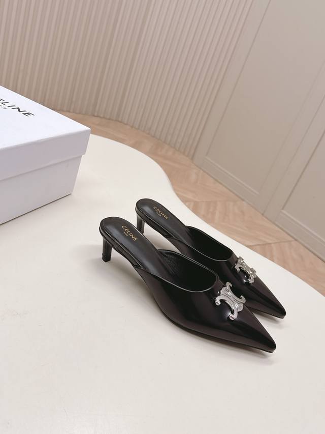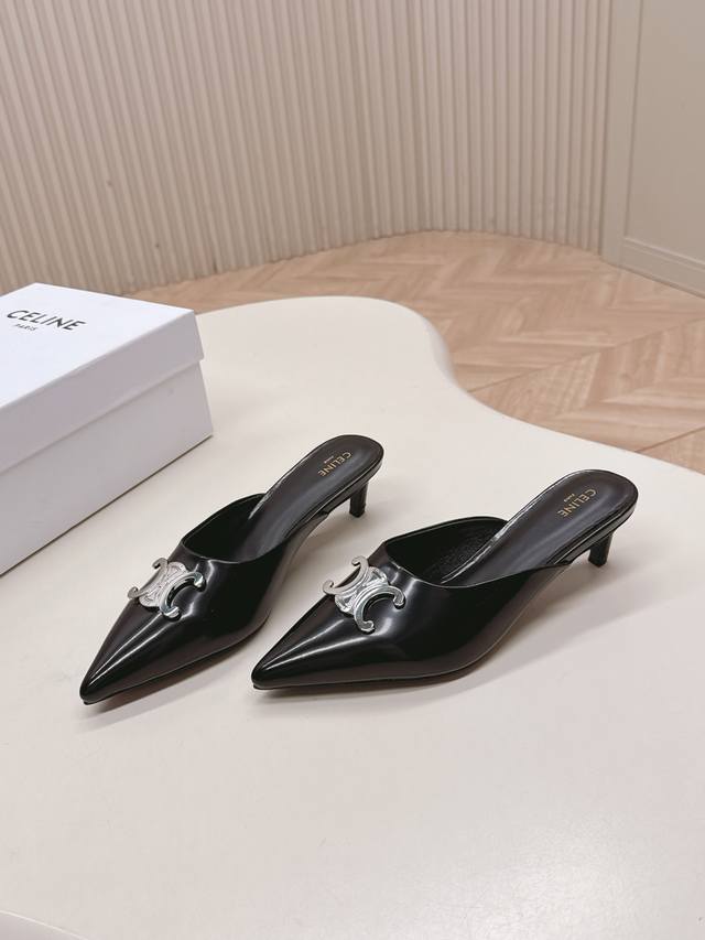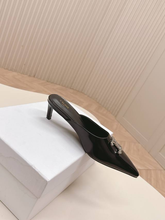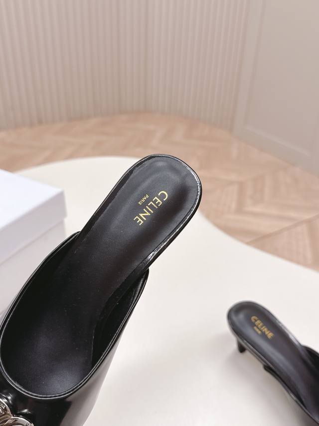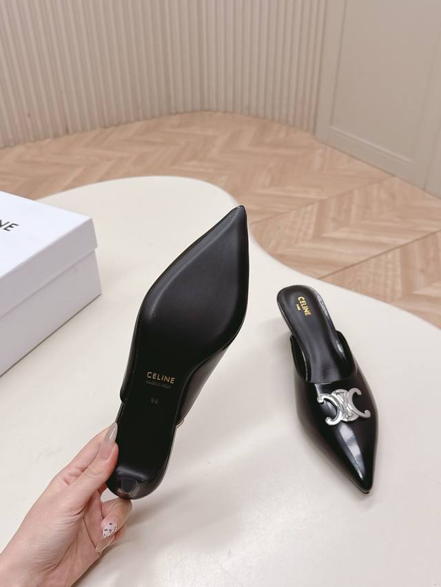 / 出 拖鞋款Celine思琳赛琳25新色新款凯旋门猫跟凉鞋女金属扣后空包头高跟鞋性感气质尖头单鞋干净利落 5厘米小猫跟超显腿细显白,无论是单穿还是搭配阔腿裤,高街