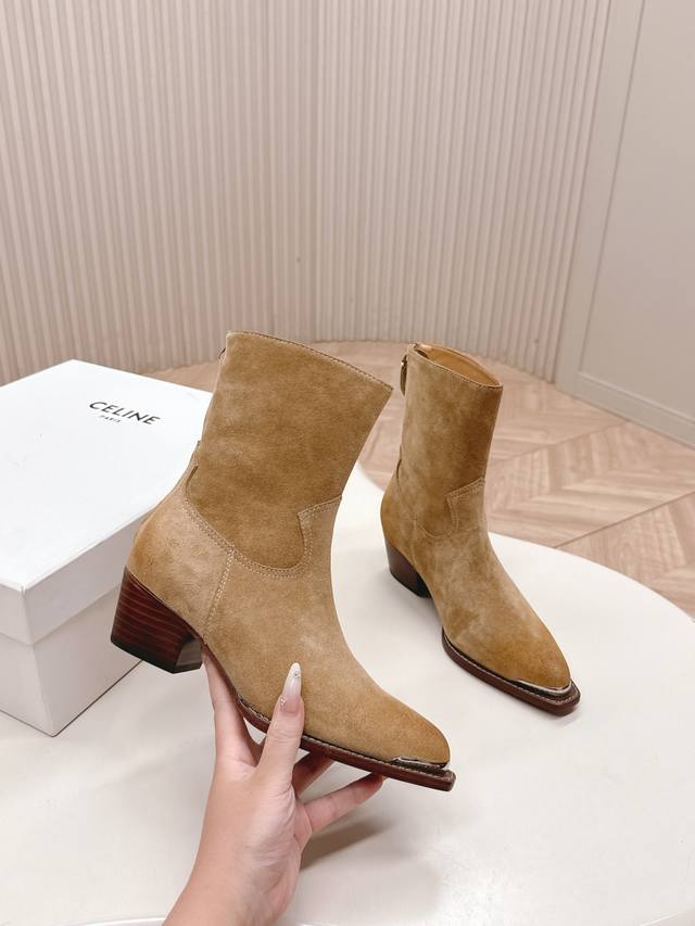 代购级 Celine塞琳 2025秋冬新款杨幂同款骑士靴 凯旋门英伦风短靴 简约大气时髦 耐看不过时...