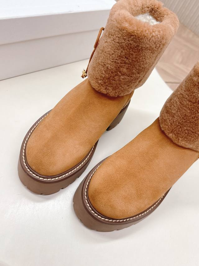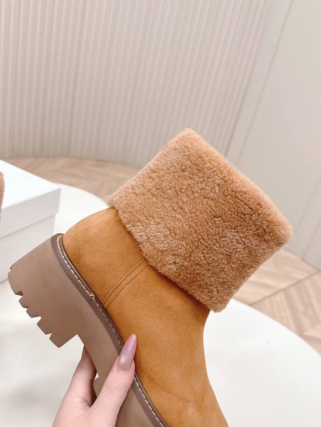 / 出 Celine 思琳新款 经典凯旋门羊毛靴雪地靴厚底短靴 超级显气质增高显瘦款 冬日女王的绝佳搭配!全羊毛保暖简约时尚又俏皮 靴筒全羊毛更显贵气优雅 鞋面:牛