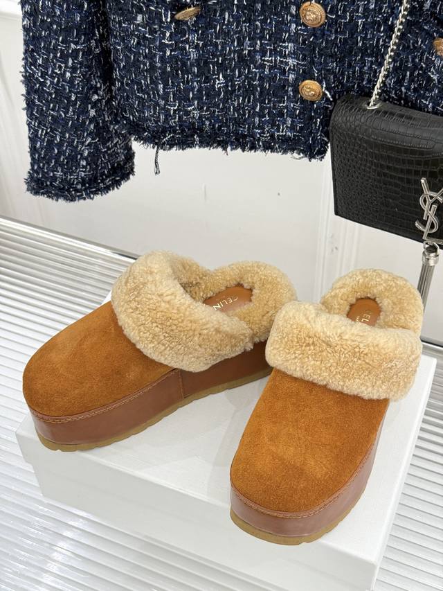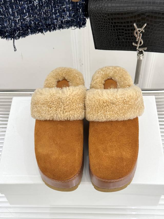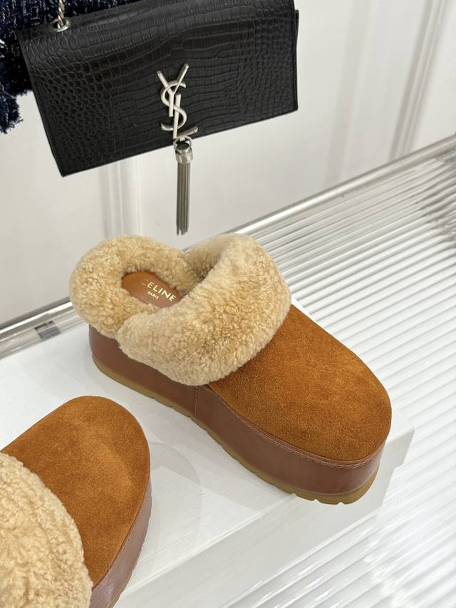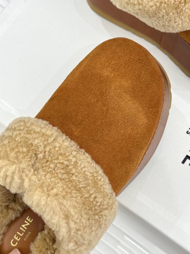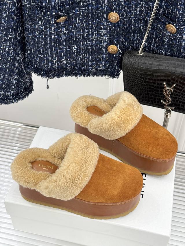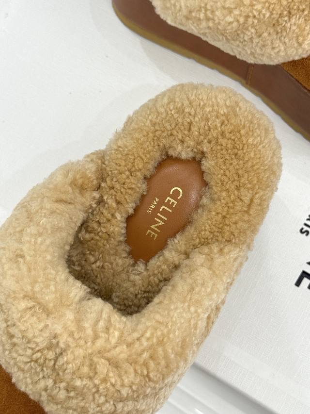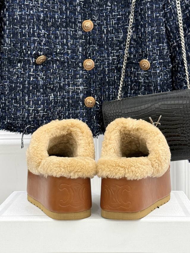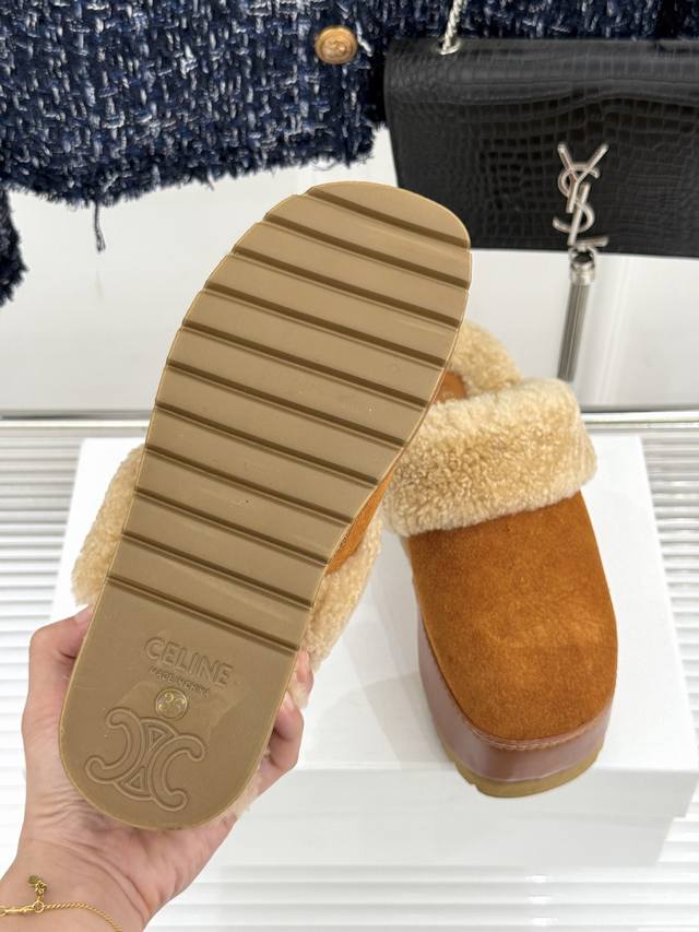 Celine 塞琳25Wf秋冬新品厚底毛毛半拖毛拖