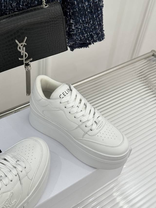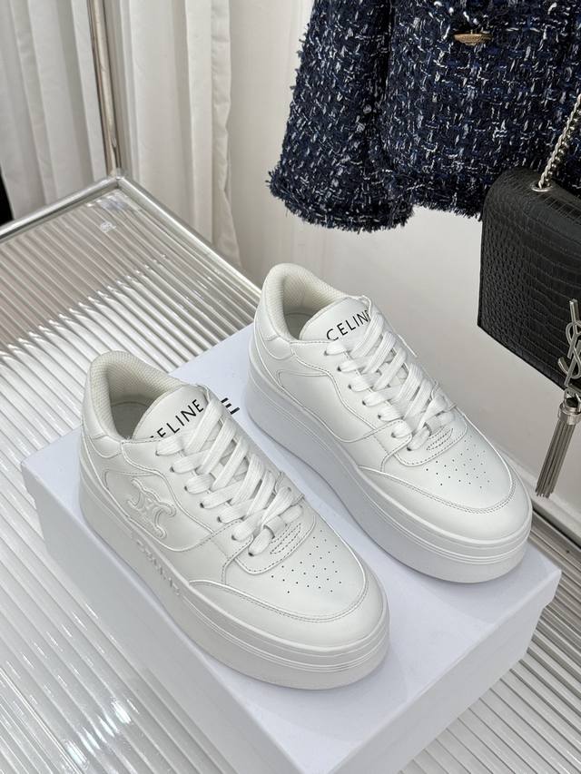 FFF 厂价 DDD Celine 塞琳经典凯旋门厚底小白鞋 DDD 当巴黎左岸的极简遇上都市的舒适需求 DDD 这双鞋便成了克制与实用主义的极致共生。 DDD 凯旋门标识这波细节真的赢麻了! DDD 鞋侧立体压印超精致 线条利落清晰 DDD 鞋舌的Celine字母低调点缀 DDD 每一处设计都长在审美上 简约不简单! DDD 5Cm黄金厚底真的是小个子天菜! DDD 悄悄拉长腿长还不显笨重 DDD 这双小白鞋直接封神 法式极简天花板 DDD 百搭不挑人 增高显瘦还巨舒服 DDD 谁穿谁是行走的法式时髦精