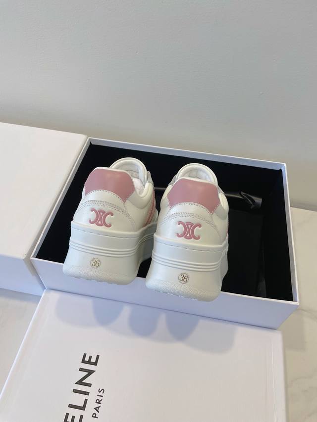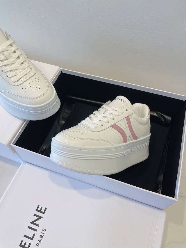 Celine 思琳经典春夏厚底增高小白鞋Celine矮子乐厚底小白鞋 简洁大气+干净秀气...