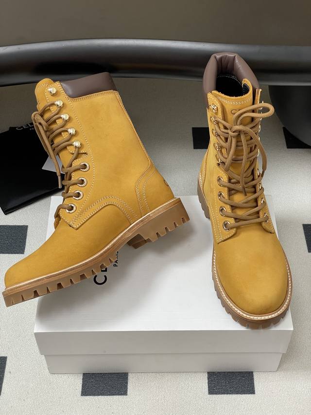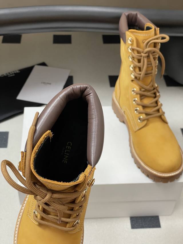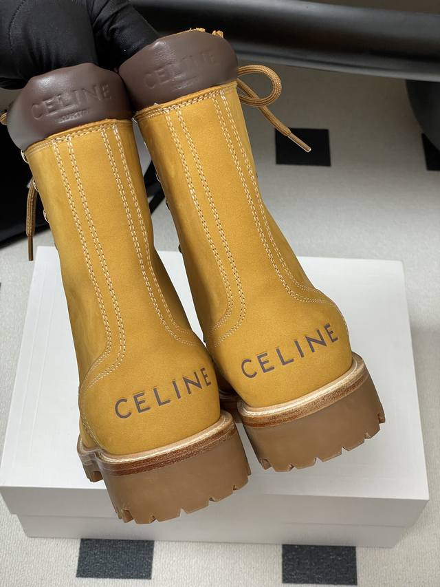 出厂价P Celine 思琳新款 经典凯旋门毛线筒祙子厚底牛皮短靴 超级显气质增高显瘦款...