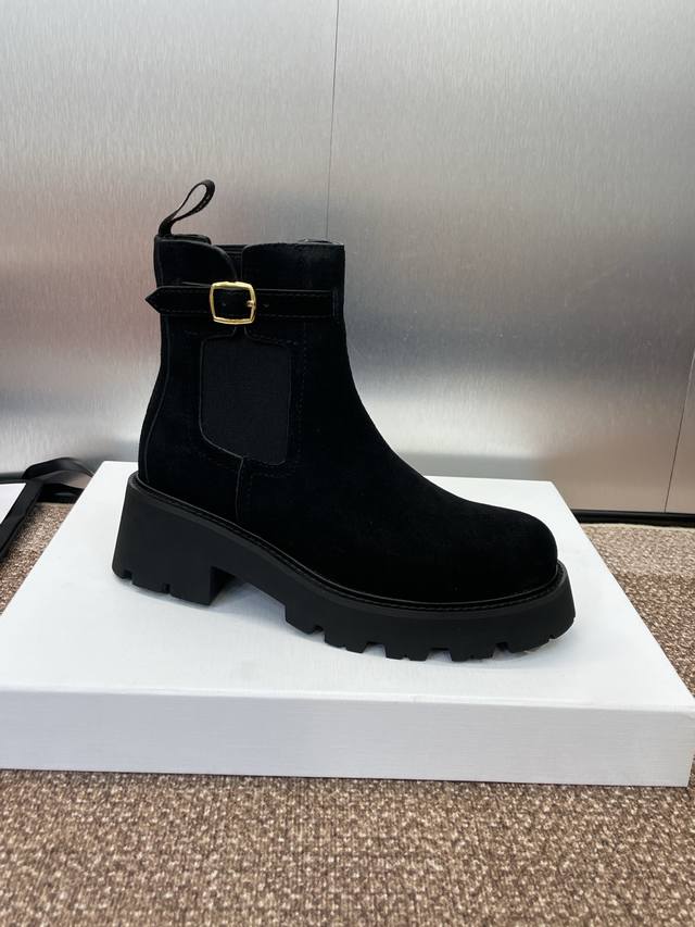 工厂P价P Celine 2025秋冬新款切尔西机车女短靴 瑟琳字母Logo五金扣厚底低跟圆头骑士靴 材质:鞋面定制进口羊猄皮+水染牛皮里+原版开模耐磨绒齿轮大底 跟高:4.5Cm Size:女码35-41 40.41定制不退换