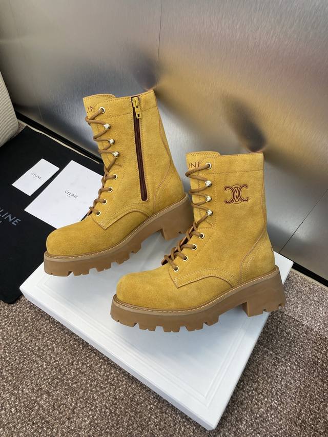 Celine布面马丁靴上新P 春夏首发春夏新款马丁靴 好物推荐厚底增高马丁靴 百搭靴子 ,大底原版开模 舒适度超极好...