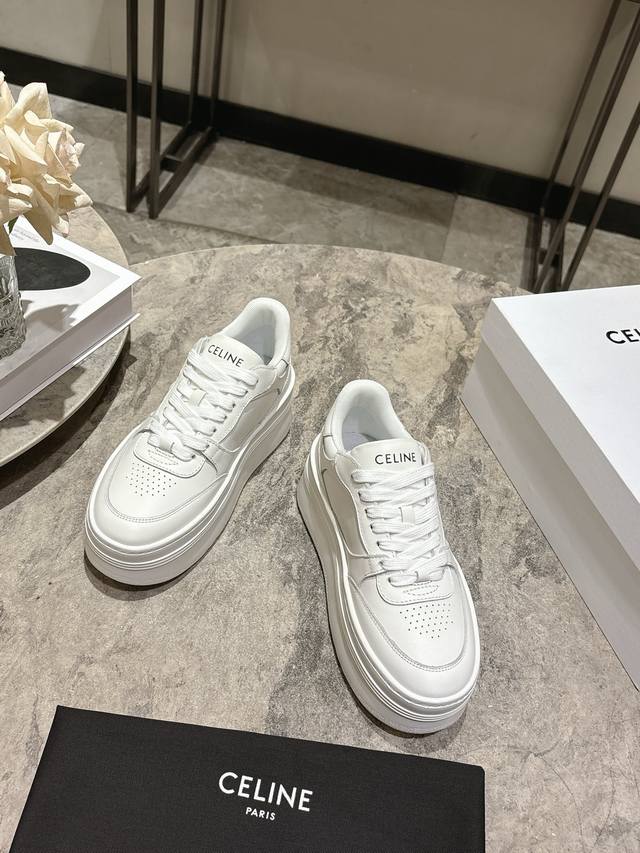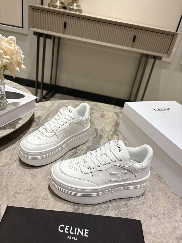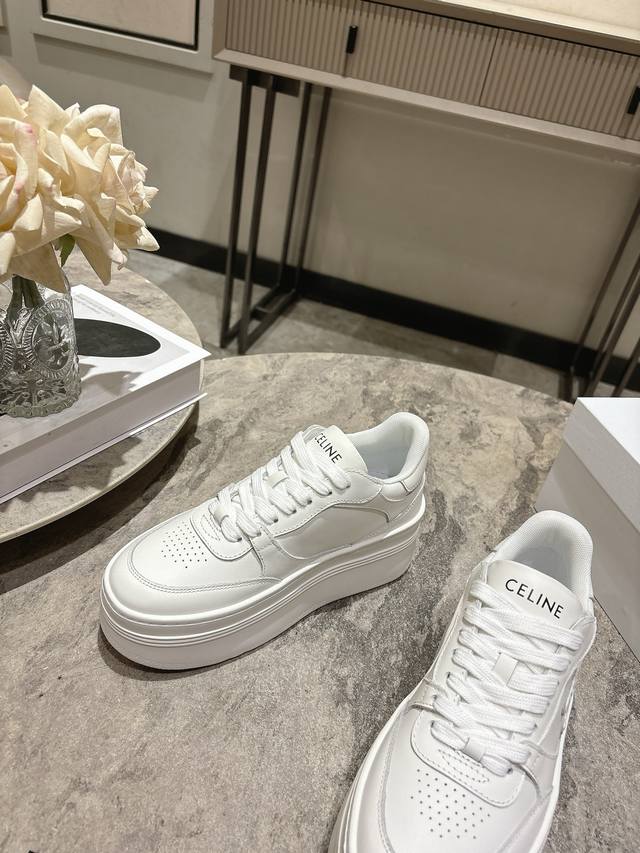 独家升级版本,厚底E V A超轻大底! Ddd Celine 思琳2026春夏新品经典厚底休闲小白鞋 Ddd 最火单品之一!刘雯 杨幂 Lisa同款,华丽又实用,本身的质感符合休闲华丽这个看似矛盾的风格,而其皮件及配件从皮包,到都在奢华的基础上突出实用主义。这双休闲,充满街头感的一双,鞋柜里永远都缺一双小白鞋,而今年这款小白鞋是不二之选。与烂大街的不同,Celine小白鞋有它自己独特的设计,皮革鞋面非常好打理,独出心裁,别具一格,侧面与后跟的Logo让他简单又不失调性,完美的一双小白鞋~ Ddd 码数:3
