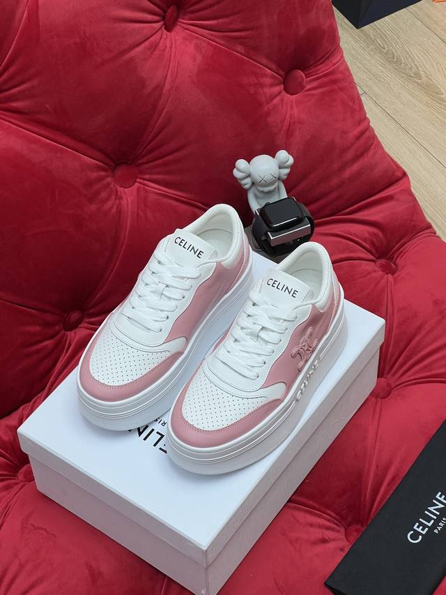 独家实拍 顶级版本 Celine 思琳 25Ss春夏新品走秀款面包鞋 Cny Block厚底系列运动鞋 这一季运动休闲鞋无论从楦型的轮廓 隔板的拼接都让人耳目一新 前后品牌Logo相呼应 大底边位明显Celine字母点缀 无不彰显品牌元素 鞋面牛皮、 DDD Tpu私模大底 DDD Size:35-39 40.41定做 DDD