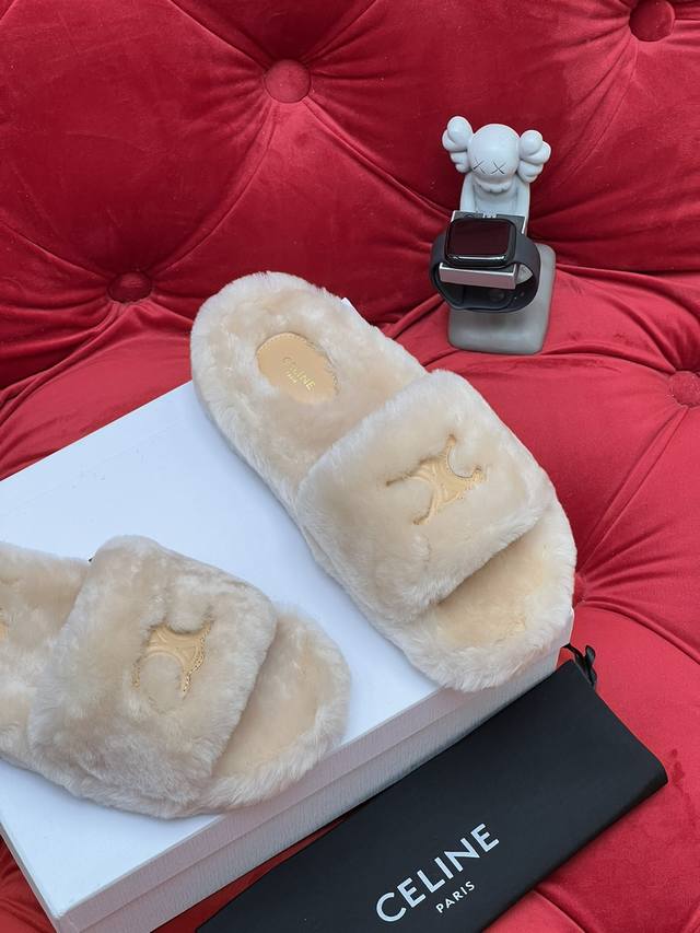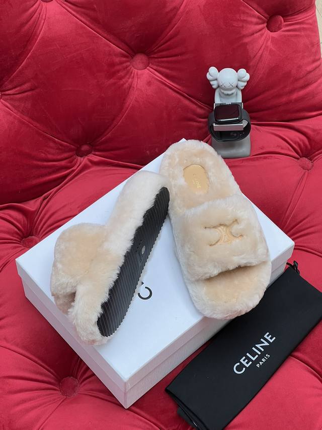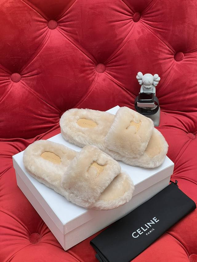 / 独家实拍 高版本 新款25Ss Celin* 塞琳毛拖~这一季的赛琳毛拖又让我重新爱了它一次 这季节美鞋太多这款毛拖真的是让我无法自拔真太可爱了~初冬外穿毛拖鞋