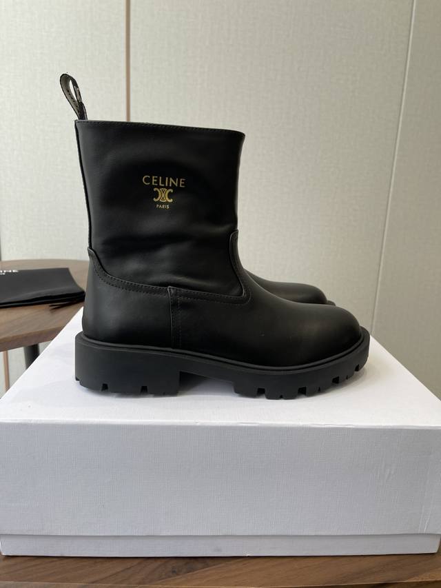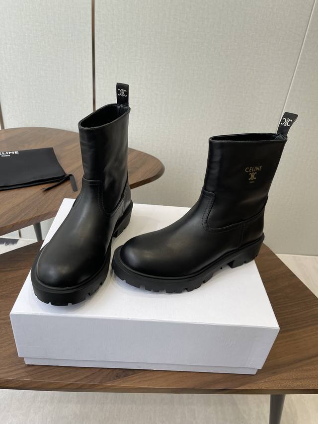 短靴 高靴 Celine 赛琳 2025Ss新款复古厚底短靴马丁靴骑士靴 网红爆款来袭!各大网红抢先体验、Celine网红Ins种草神器、非常复古风、气场十足单