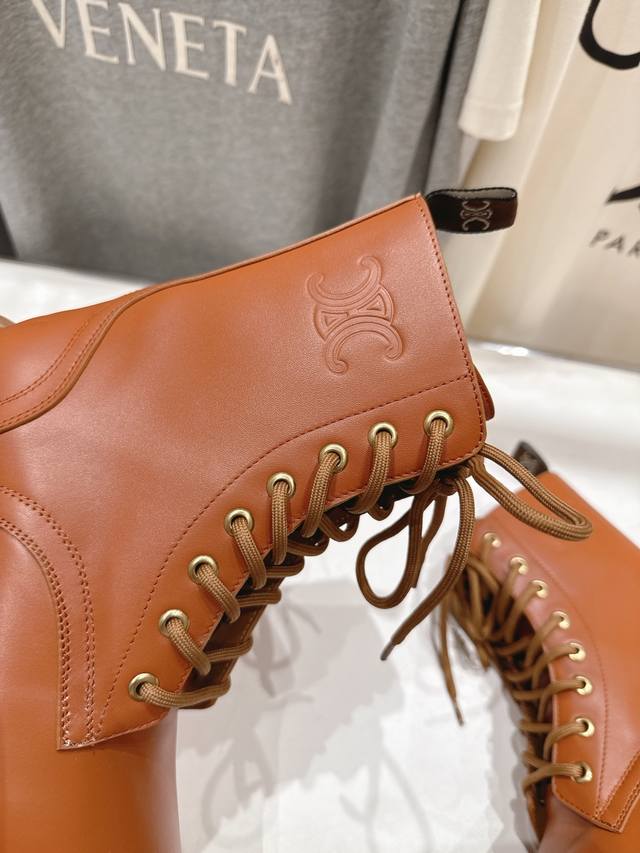 赛琳新款复古系带厚底中短靴马丁靴骑士靴. 网红爆款来袭!各大网红抢先体验、Celine网红Ins种草神器、非常复古风、气场十足单品、设计风格非常新颖、高档且非常