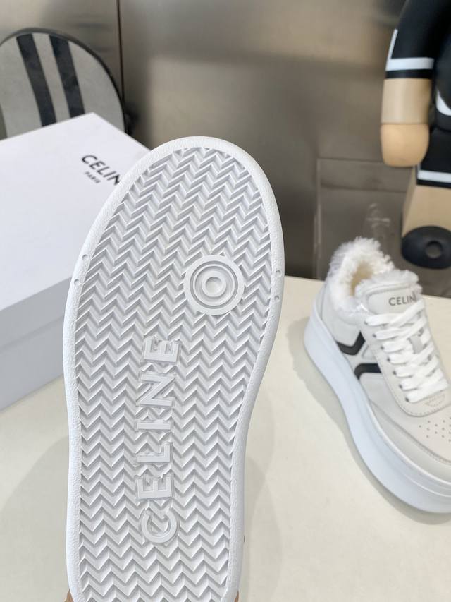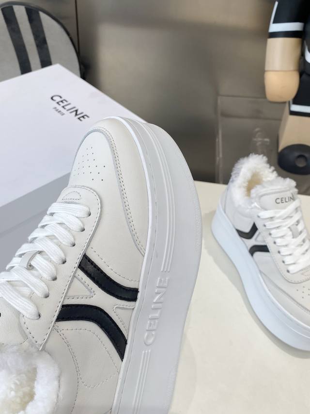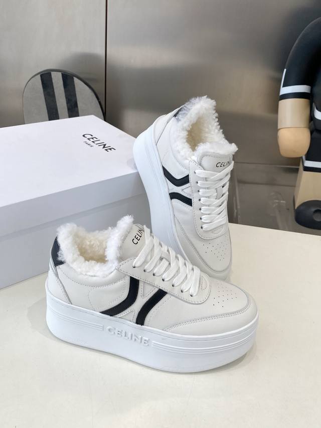 / 赛琳 新款徽标系带厚底羊毛里休闲鞋小白鞋. 闪亮登场 简约耐看 保暖舒百搭 舒适感爆表,高街又复古一起来做Celine女孩 鞋面:进口头层小牛皮 内里:进口羊毛