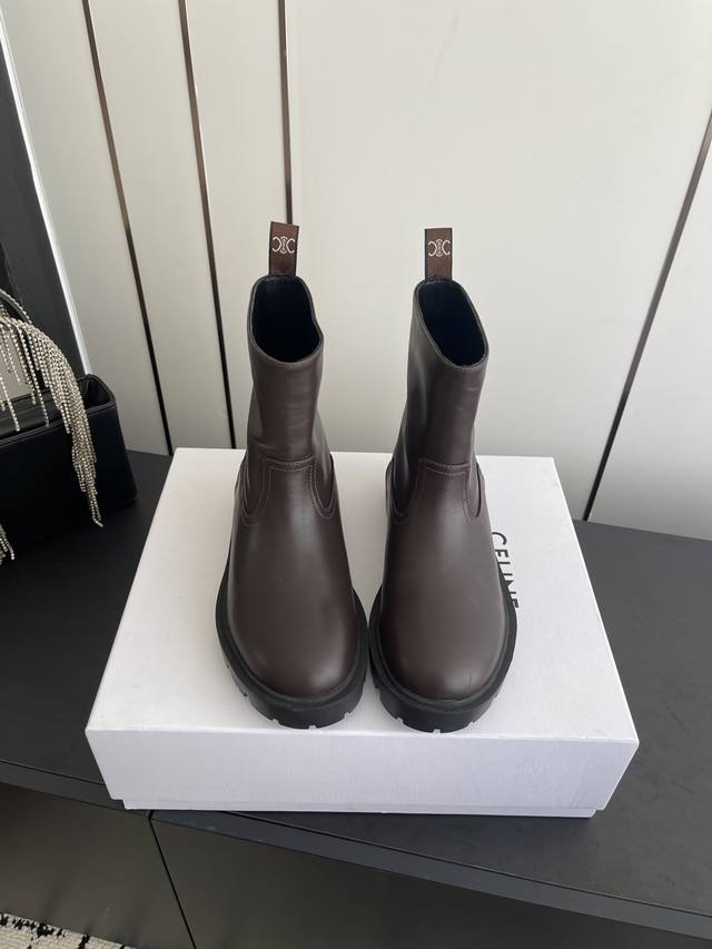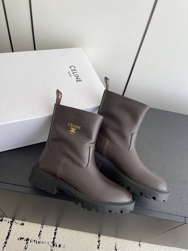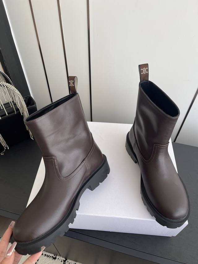 代购级 Celine塞琳 2025秋冬新款杨幂同款骑士靴 凯旋门英伦风短靴 简约大气时髦 耐看不过时...