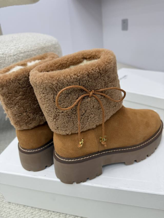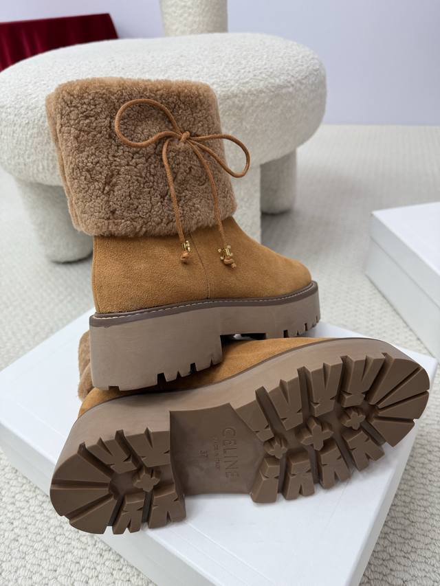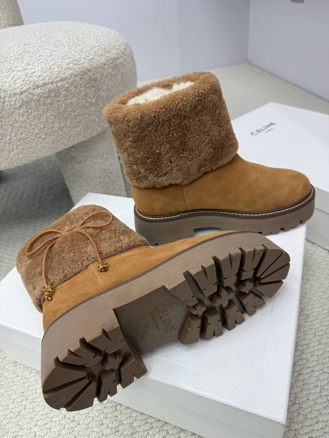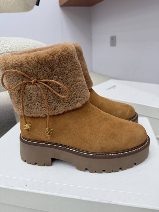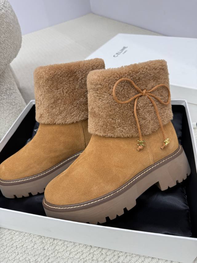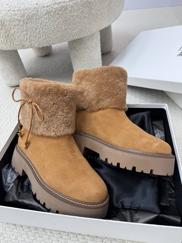 顶级品质 Celine 25Fw New Arrival~ C家2025秋冬新款短靴 毛靴 皮毛一体材质,搭配蝴蝶结装饰,简约俏皮 厚底增高显腿长,也显腿瘦 决