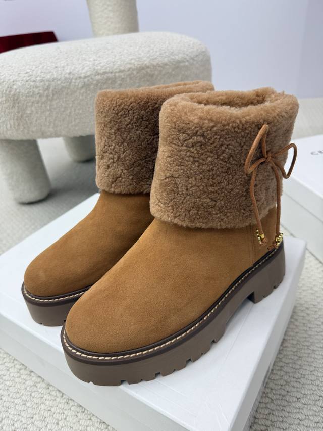 / 顶级品质 Celine 25Fw New Arrival~ C家2025秋冬新款短靴 毛靴 皮毛一体材质,搭配蝴蝶结装饰,简约俏皮 厚底增高显腿长,也显腿瘦 决