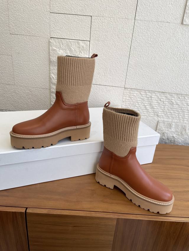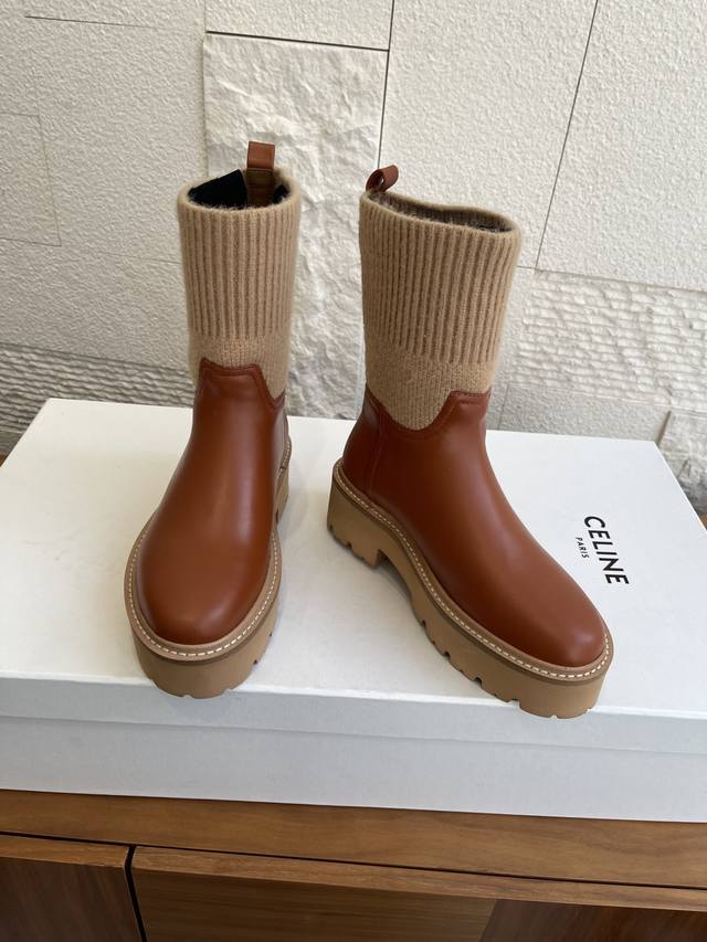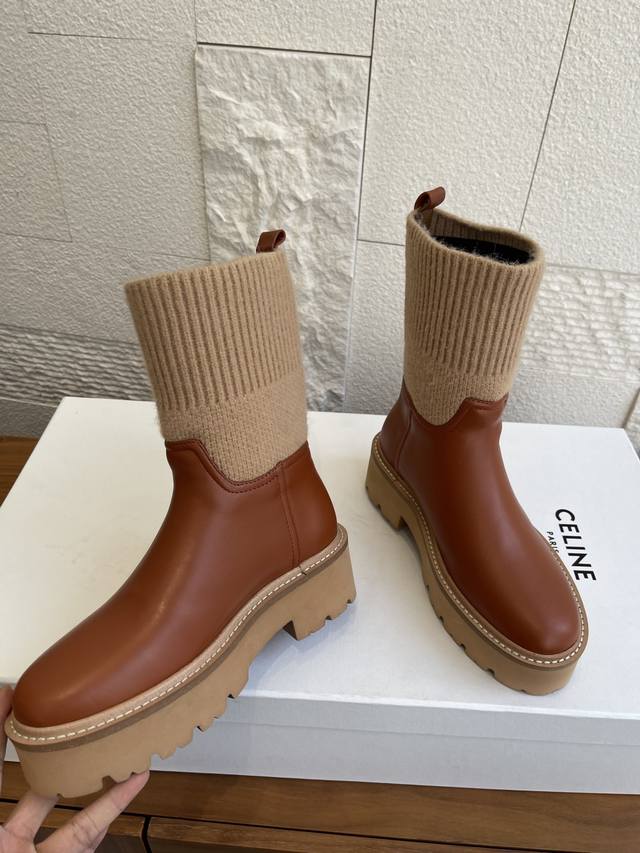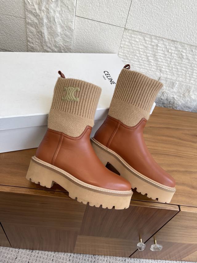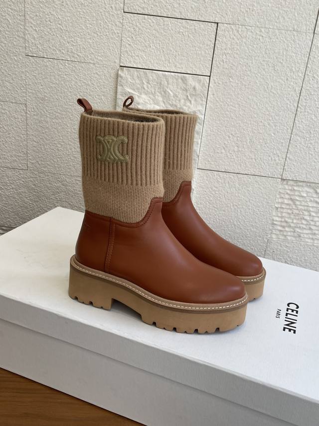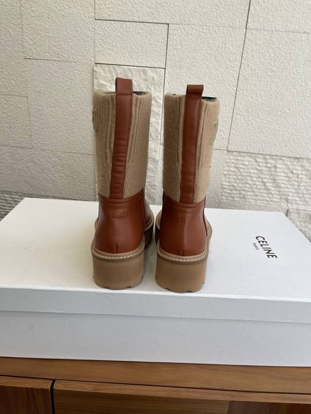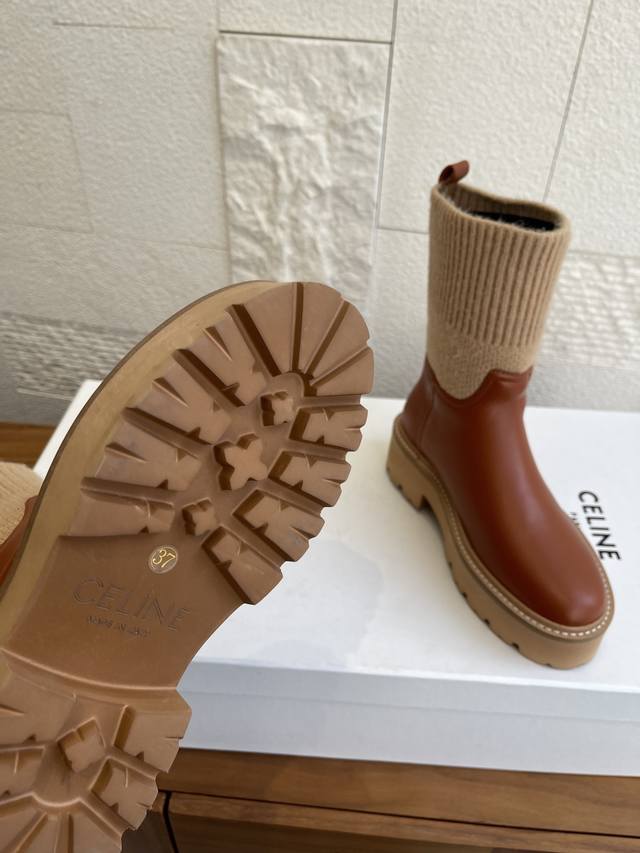 顶级版本:短靴 长靴 Celine 赛琳 2025 秋冬款 圆头 凯旋门 拼色 针织袜筒靴 短靴 长靴 Celine 这款Bulky Buckled系列拼色,定制蜡感胎小牛皮+进口针织袜筒,拼接设计超有层次感!长筒鞋筒外侧配以凯旋门标志,靴筒弹力好不易变形,复古英伦风,搭配短裙或紧身裤都很出彩,显腿细又时髦。独家开发耐磨绒真皮沿条多层组合大底,内里羊皮,柔软舒适,秋冬穿超合适。 面料:进口小牛皮 针织袜筒 内里:进口羊皮 大底:原版开模发泡大底 底厚:4.5Cm Size:35-42 40 41 42定做
