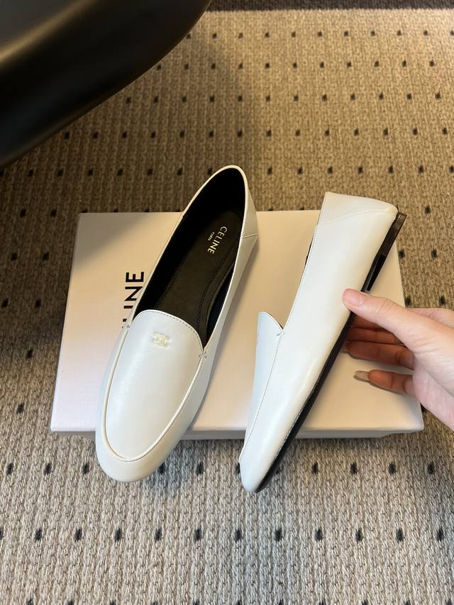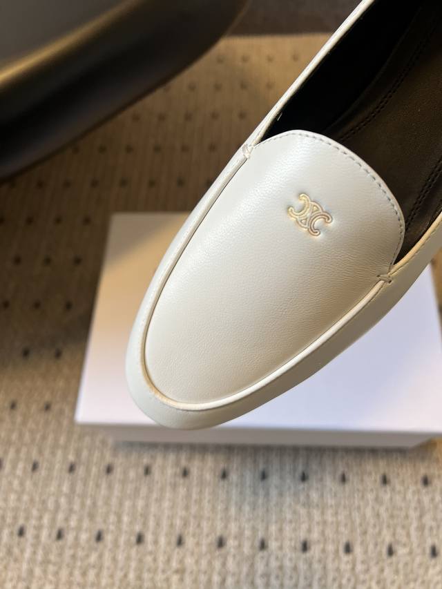 顶级版本 Celine 平底休闲圆头乐福鞋平底鞋 DDD 经典的平底乐福鞋版型,鞋头为圆润的椭圆型,鞋身线条简约流畅,无多余装饰,属于极简风格的穆勒乐福鞋款式,穿脱便捷。采用细腻的皮革材质,鞋面质感柔软且有光泽,鞋身剪裁利落,做工精致。 DDD 鞋身正面有小巧的Celine金属徽标装饰,低调又凸显品牌辨识度,鞋内也印有品牌字样。平底设计搭配柔软皮质,兼顾了舒适度与日常实穿性,适合通勤、休闲等多种场合。 DDD 鞋面:混种羊皮 Ddd 内里:羊皮 Ddd 大底:真皮大底 Ddd 增高:3Cm Ddd Siz