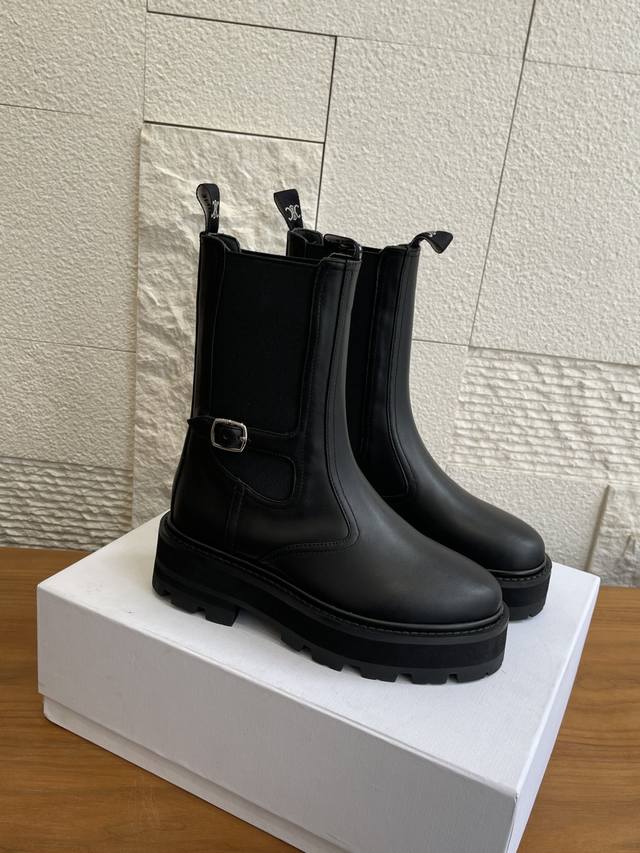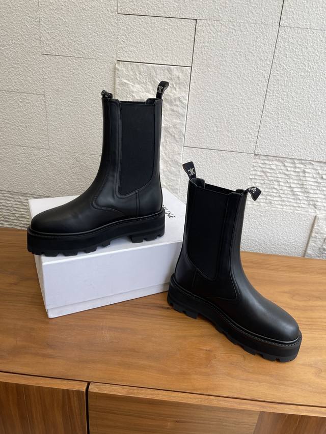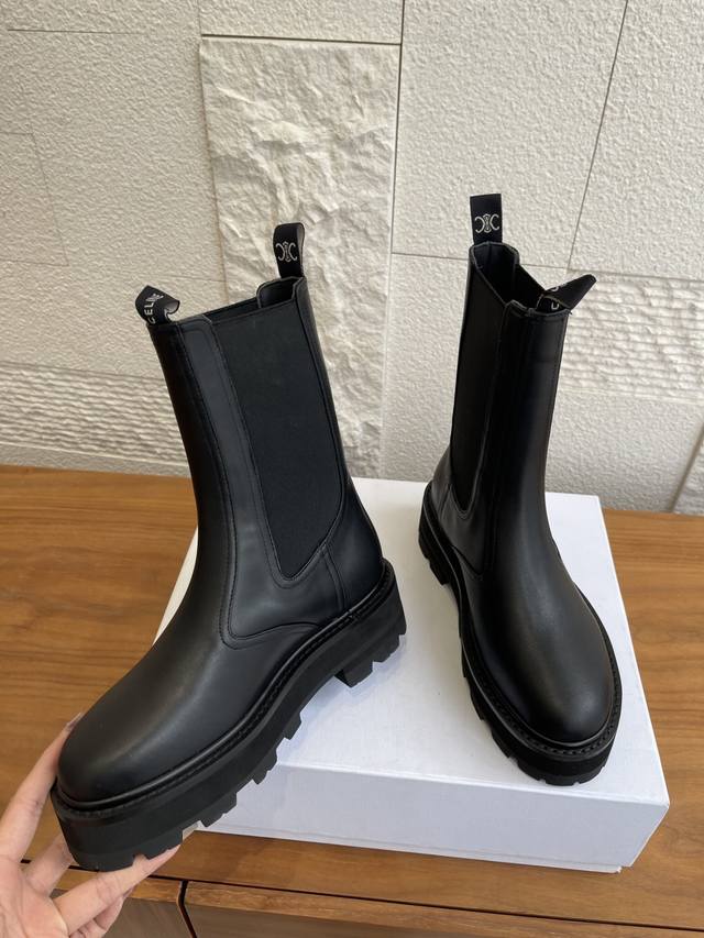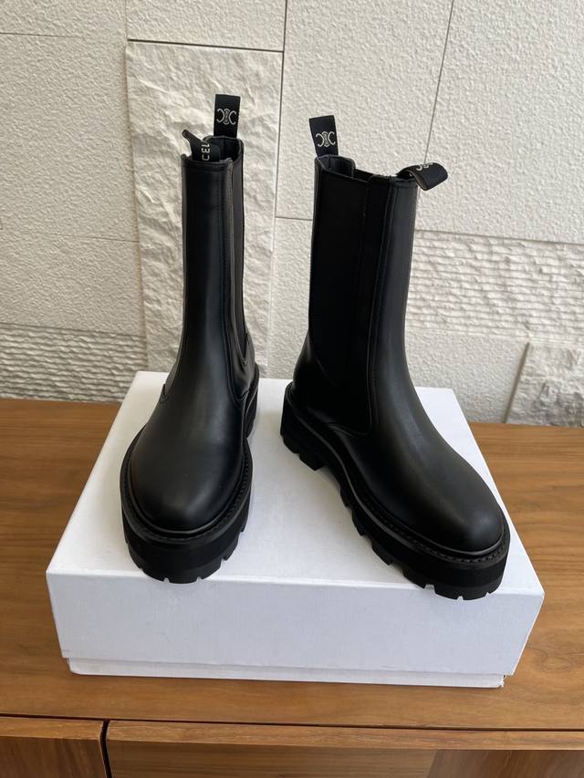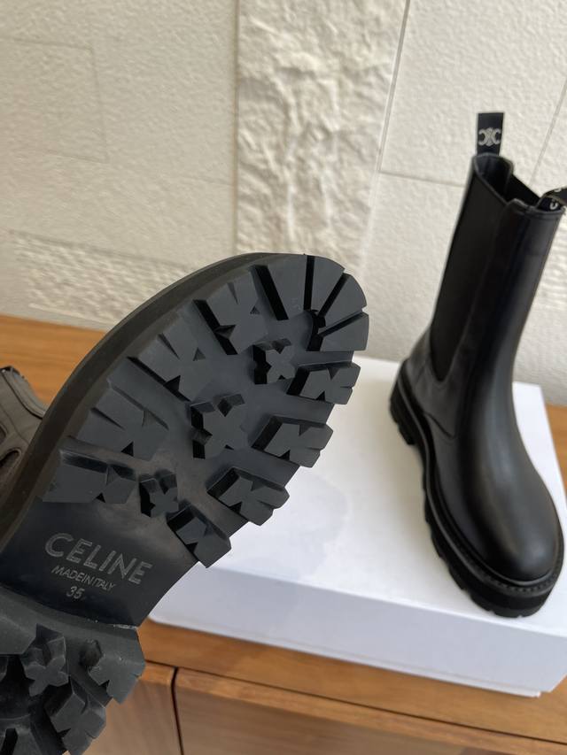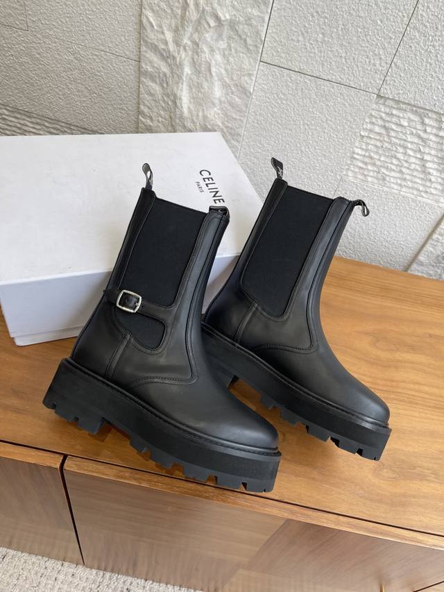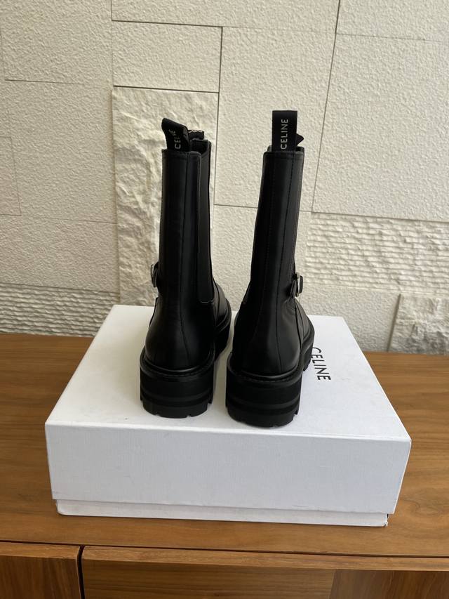 顶级版本: DDD Celine 赛琳 25 秋冬新款 Bulky系列 厚底 切尔西 马丁靴 骑士靴 DDD Celine切尔西、马丁靴、骑士靴,牛皮鞋面+系带、搭扣,低调又有辨识度。内里羊皮柔软舒适,厚底橡胶大底抓地力强,耐磨又耐穿。圆头设计复古百搭,靴简高度适中,修饰腿型不臃肿,秋冬搭配大衣、针织裙都超有范儿! DDD 面料:进口牛皮 DDD 内里:牛皮 DDD 大底:原版开模橡胶组合大底 DDD Size:35-41 40 41定做不退换 DDD
