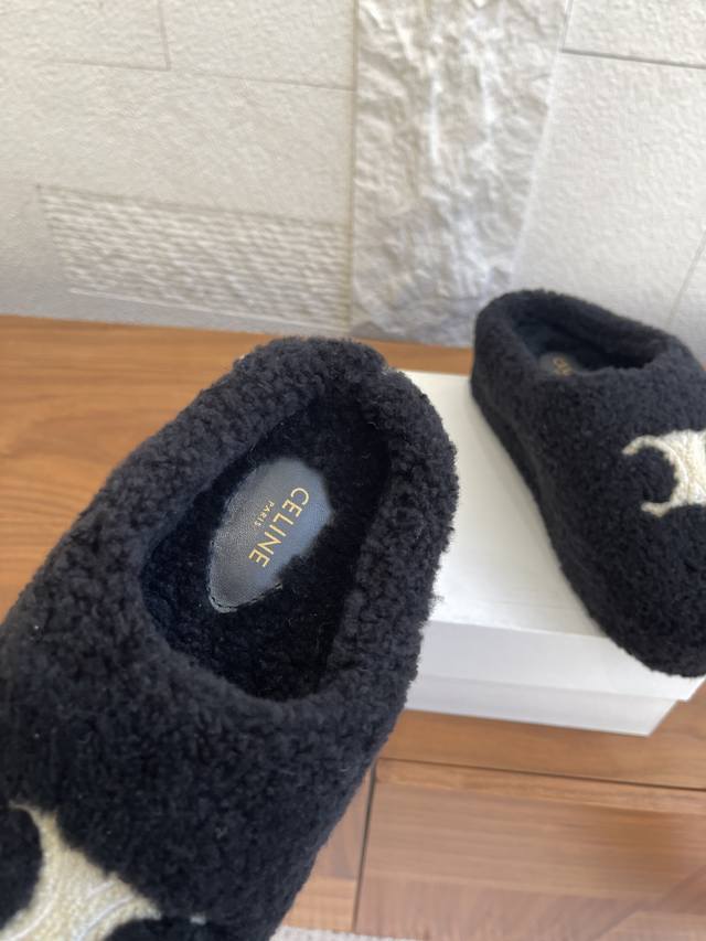 顶级版本: Celine 赛琳 25Ss 秋冬新款 厚底 一脚蹬 羊毛包头拖 拖鞋 Celine赛琳这个冬天让你温暖又时髦!厚实的鞋底不仅带来无限舒适,还拥有超