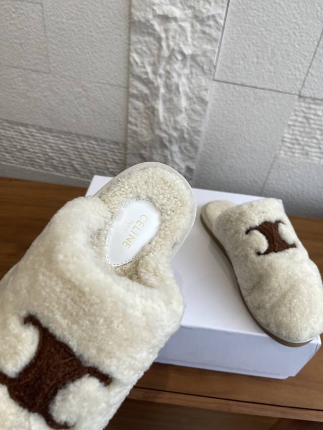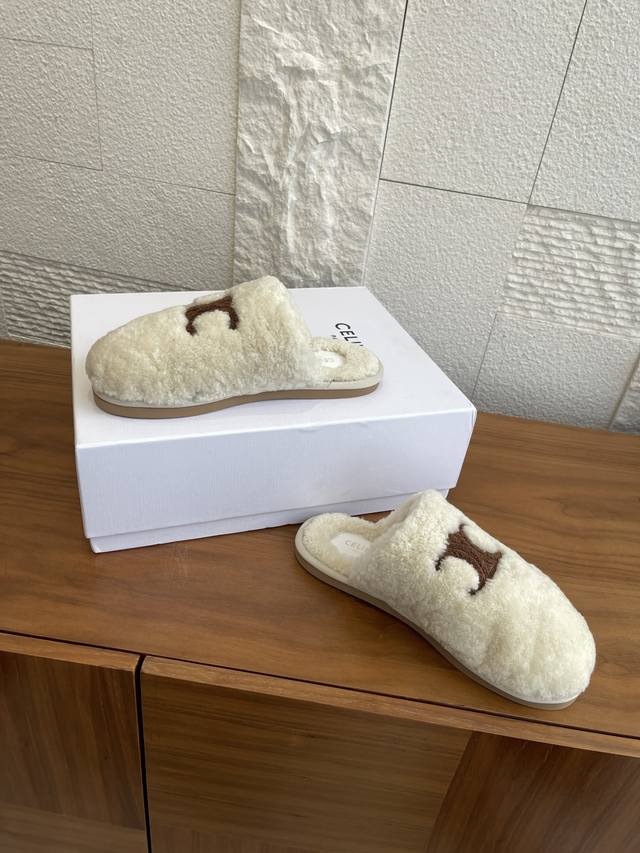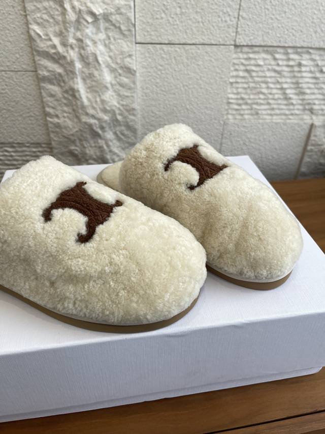 顶级版本: Celine 赛琳 25Ss 秋冬新款 Georgia拖鞋 刺绣 凯旋门 包头拖 毛毛鞋 Celine最新呈现全新Georgia拖鞋 ,刺绣勾花绣标穆勒羊毛拖鞋系列。鞋面饰以高密度3D立体电绣Logo凯旋门徽标,皮毛一体的羊卷毛穿着更舒适。秋冬季全天候任意搭配,居家逛街都能随意穿着 面料:进口羊卷毛 大底:原版开模橡胶发泡大底 Size:35-41 40 41定做不退换