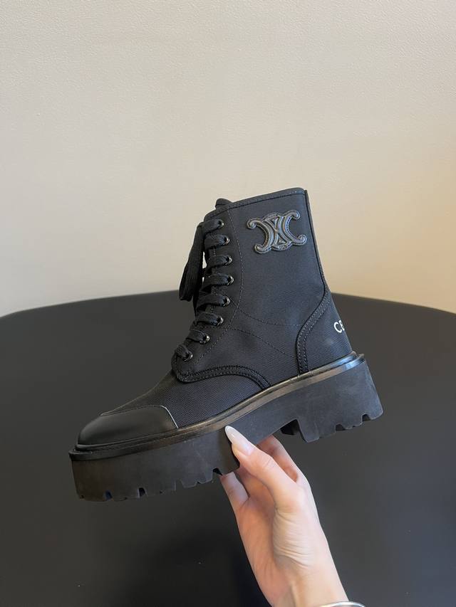 顶级版本 Celine 25Ss凯旋门复古厚底绑带马丁靴短靴 DDD 鞋身带有Celine标志性的字母压纹 装饰,低调中透出高奢辨识度,是品牌极简高级风格的体现。涵盖麂皮、哑光皮革、亮面皮革等材质,配色以低饱和大地色和经典黑为主,适配各种简约穿搭。 DDD 鞋底厚实且带有复古纹路,既拉长腿部比例,又保证了行走的舒适度,同时让硬朗的马丁靴多了几分松弛感。既能搭配中性风的西装、阔腿裤,也能和温柔系的连衣裙、针织衫组合,平衡了酷感与优雅。 DDD 鞋面:牛皮 羊京 Ddd 内里:羊皮 布 Ddd 大底:真皮沿条
