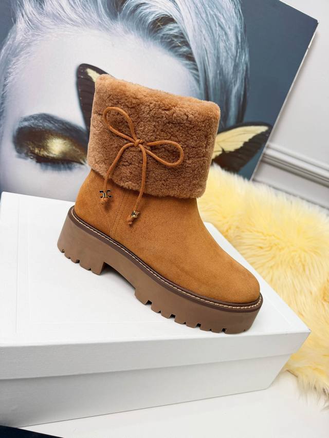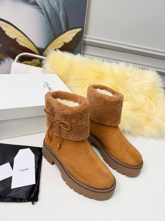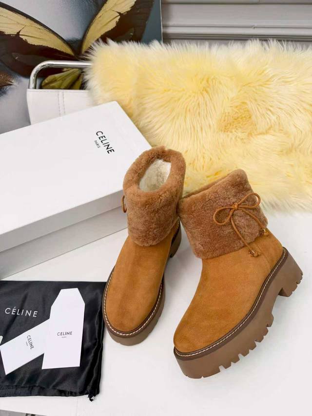 顶级Celine Ss家早春秀款短靴新品 New 牛皮加羊毛里,搭配蝴蝶结装饰,简约俏皮厚底增高显腿长,也显腿瘦决绝子单品无疑呀 顶级品质Size35-40 40定制不退换