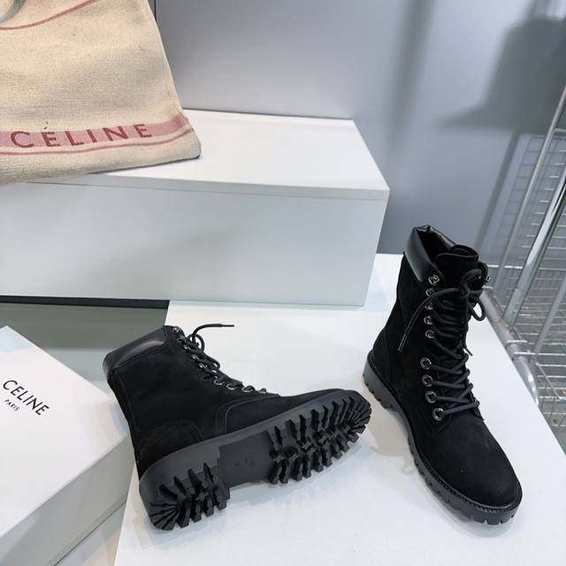 高品质出厂女 !男 ! 顶级品质情侣款 Celine赛琳25Ss秋冬新款情侣款马丁大黄靴系列经典马丁靴厚底系带乐福鞋!经典不过时 经典再现 缠绕鞋带勾勒随性,复古孔眼点缀细节,耐磨橡胶底伴你自在前行。极简设计与精湛工艺碰撞,一脚穿出法式慵懒腔调,解锁日常高级感 日常出街的休闲装,四季可搭配!它都能完美适配,轻松提升整体造型的质感 而且这双鞋的设计很贴合脚型,走路不累脚,春夏穿着也很透气,不会闷汗 不管你是去逛街、旅行还是运动,它都能成为你的最佳搭子 鞋面采用原版进口磨砂牛皮 垫脚内里水染牛皮 鞋底真皮沿条