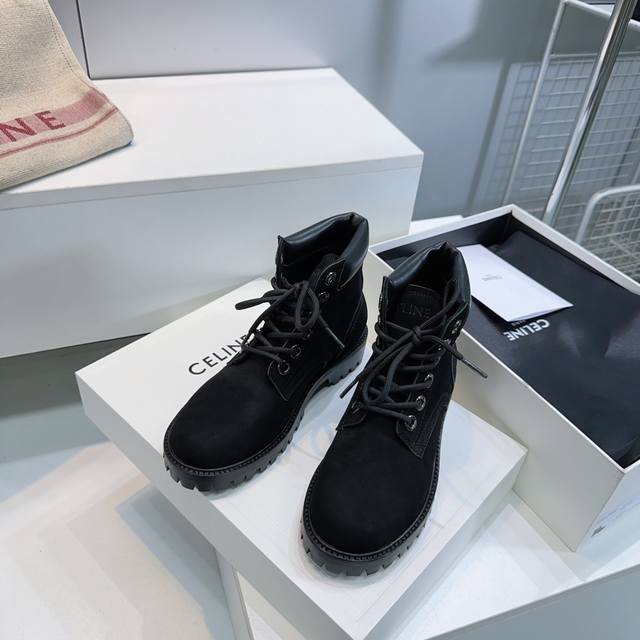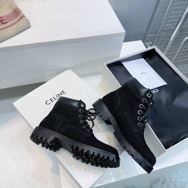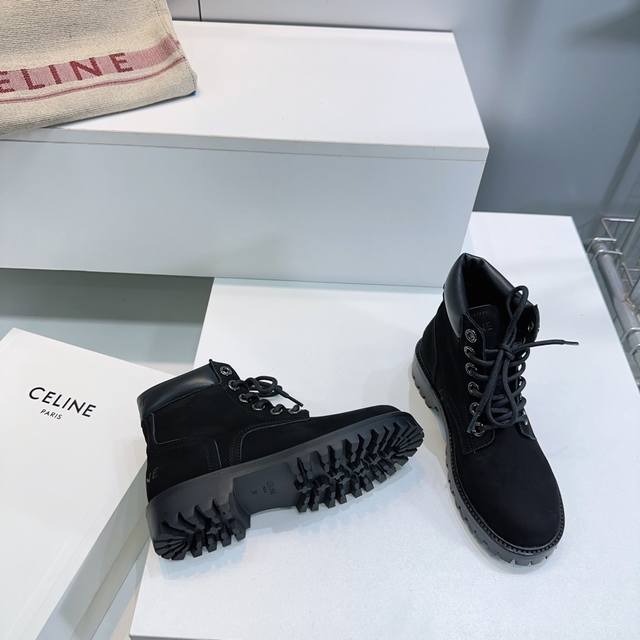 高品质出厂女 !男 ! 顶级品质情侣款 Celine赛琳25Ss秋冬新款情侣款马丁大黄靴系列经典马丁靴厚底系带乐福鞋!经典不过时 经典再现 缠绕鞋带勾勒随性,复古孔眼点缀细节,耐磨橡胶底伴你自在前行。极简设计与精湛工艺碰撞,一脚穿出法式慵懒腔调,解锁日常高级感 日常出街的休闲装,四季可搭配!它都能完美适配,轻松提升整体造型的质感 而且这双鞋的设计很贴合脚型,走路不累脚,春夏穿着也很透气,不会闷汗 不管你是去逛街、旅行还是运动,它都能成为你的最佳搭子 鞋面采用原版进口磨砂牛皮 垫脚内里水染牛皮 鞋底真皮沿条