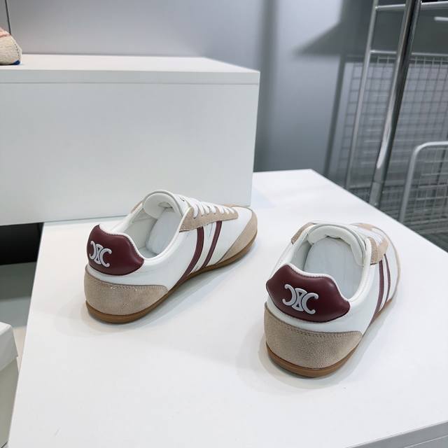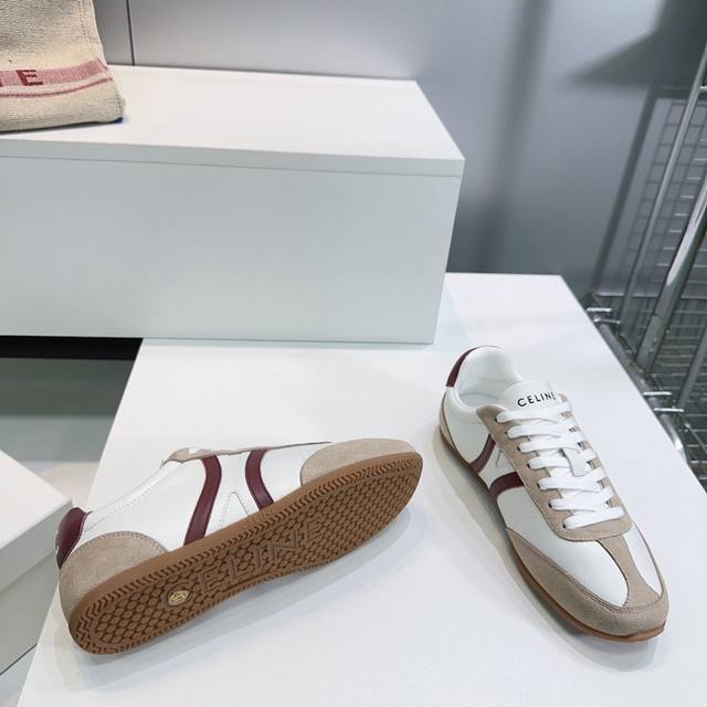高品质出厂平底女 !男 !顶级品质 情侣款Celine赛琳2025春夏新品秀场主推款凯旋门徽标系带休闲鞋小白鞋 简单舒服,干净利落,增高显腿细,无论是单穿还是搭