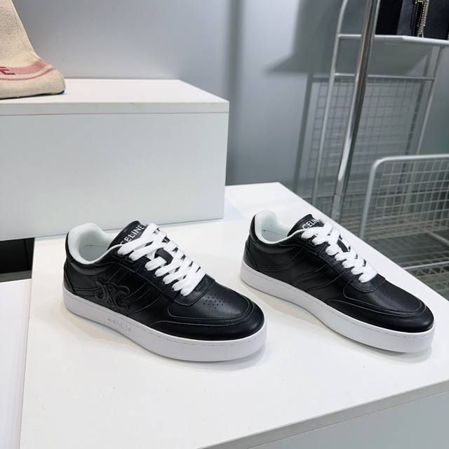 高品质出厂平底 !顶级品质升级版本!Celine赛琳25秋冬新品休闲小白鞋!最火休闲鞋单品之一!刘雯 杨幂 Lisa同款,华丽又实用,本身的质感符合休闲华丽这个看似矛盾的风格,而其皮件及配件从皮包,皮鞋到领带丝巾都在奢华的基础上突出实用主义。这双休闲板鞋,充满街头感的一双鞋子,鞋柜里永远都缺一双小白鞋,而今年这款小白鞋是不二之选。与烂大街的Aj不同,Celin 小白鞋有它自己独特的设计,皮革鞋面非常好打理,独出心裁,别具一格,侧面与后跟的Logo让他简单又不失调性,完美的一双小白鞋~ 鞋面采用原版牛皮,内