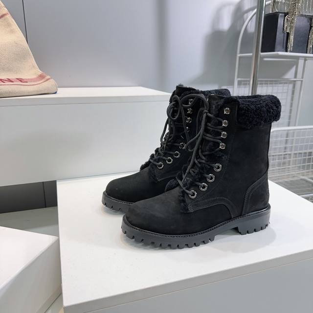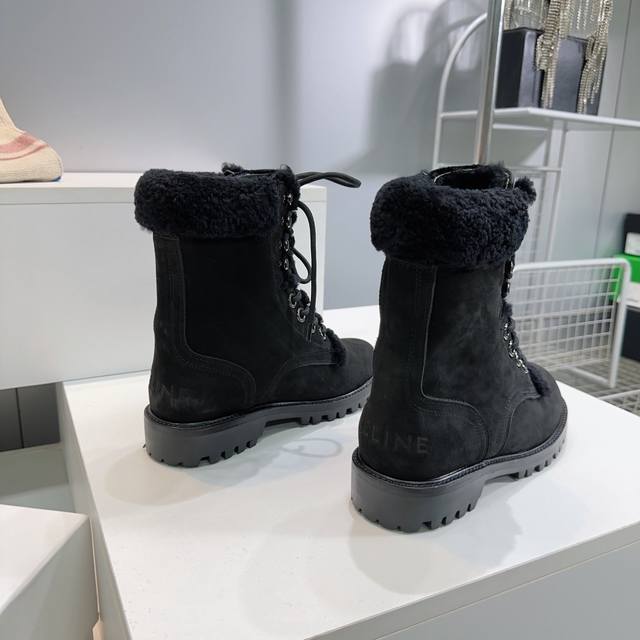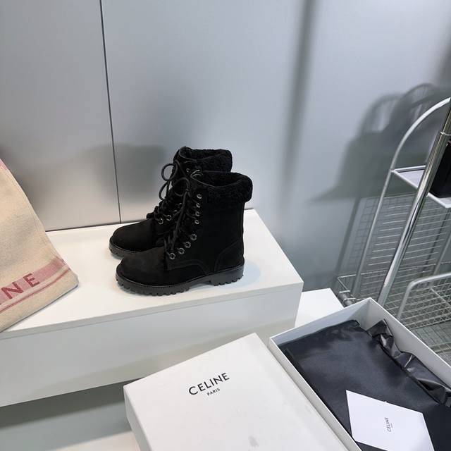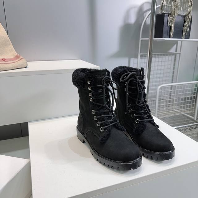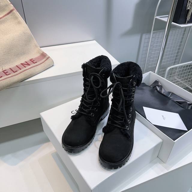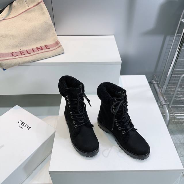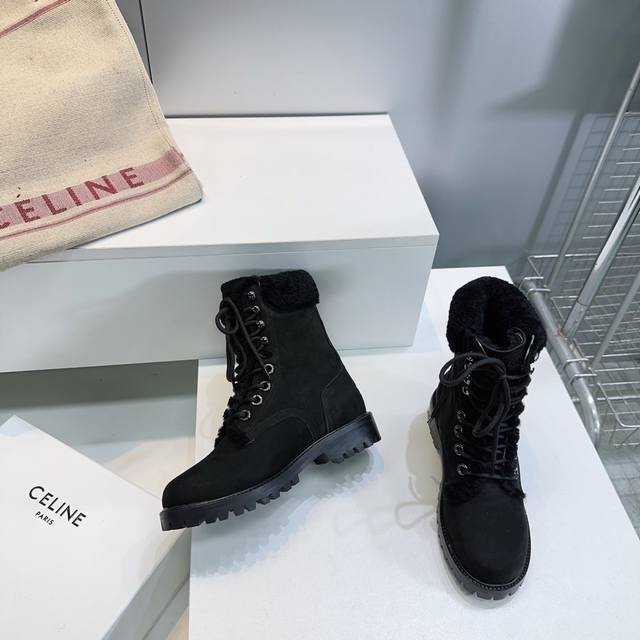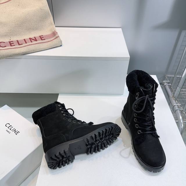 高品质出厂毛里女 !男 ! 顶级品质情侣款 Celine赛琳25Ss秋冬新款情侣款马丁大黄靴系列经典马丁靴厚底系带毛里雪地靴!经典不过时 经典再现 缠绕鞋带勾勒随性,复古孔眼点缀细节,耐磨橡胶底伴你自在前行。极简设计与精湛工艺碰撞,一脚穿出法式慵懒腔调,解锁日常高级感 日常出街的休闲装,四季可搭配!它都能完美适配,轻松提升整体造型的质感 而且这双鞋的设计很贴合脚型,走路不累脚,春夏穿着也很透气,不会闷汗 不管你是去逛街、旅行还是运动,它都能成为你的最佳搭子 鞋面采用原版进口磨砂牛皮 垫脚内里进口羊羔毛 鞋