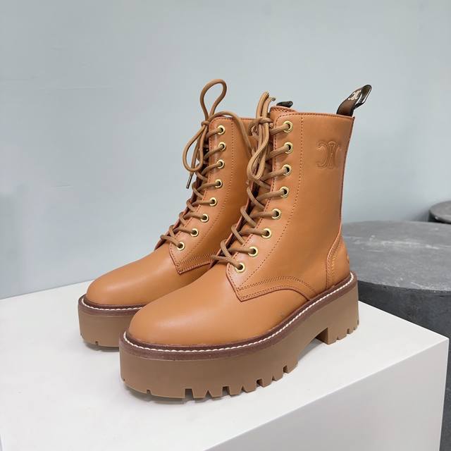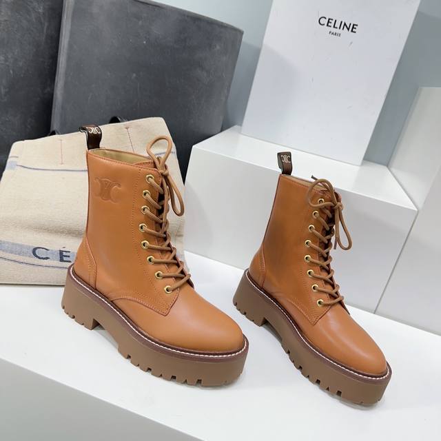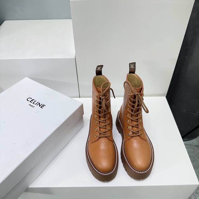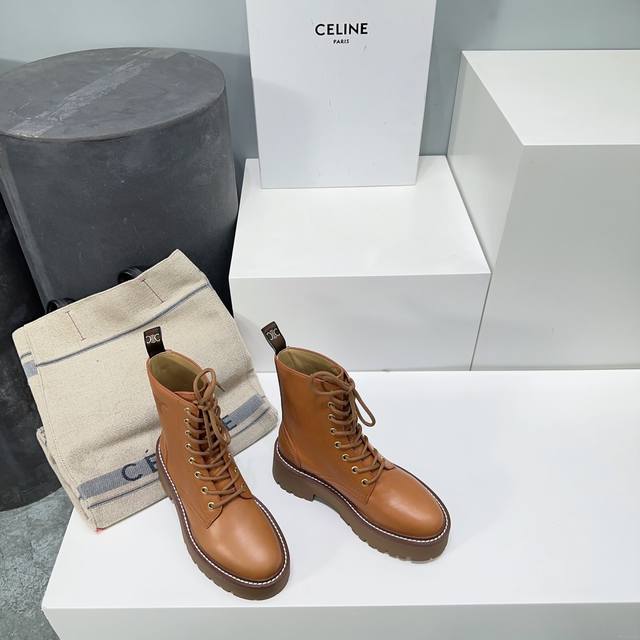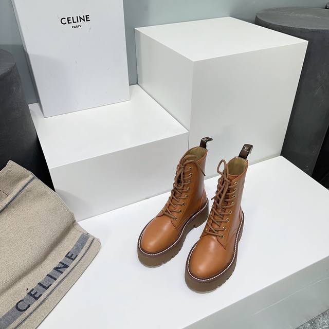 / 高品质出厂皮面 !布面 !顶级品质Celine赛琳25Ss秋冬经典新款厚底无敌显瘦马丁靴系带短靴!松糕厚底上脚超级帅气超级酷!秀气又不失帅气,配牛仔裤绝绝子绝对