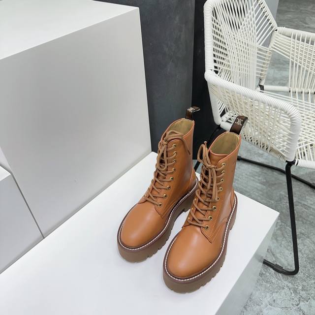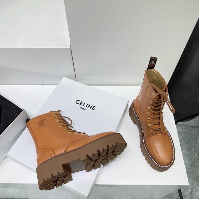 工厂P价P Celine 2025秋冬新款系带机车女短靴...