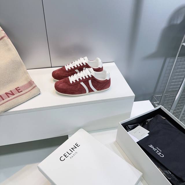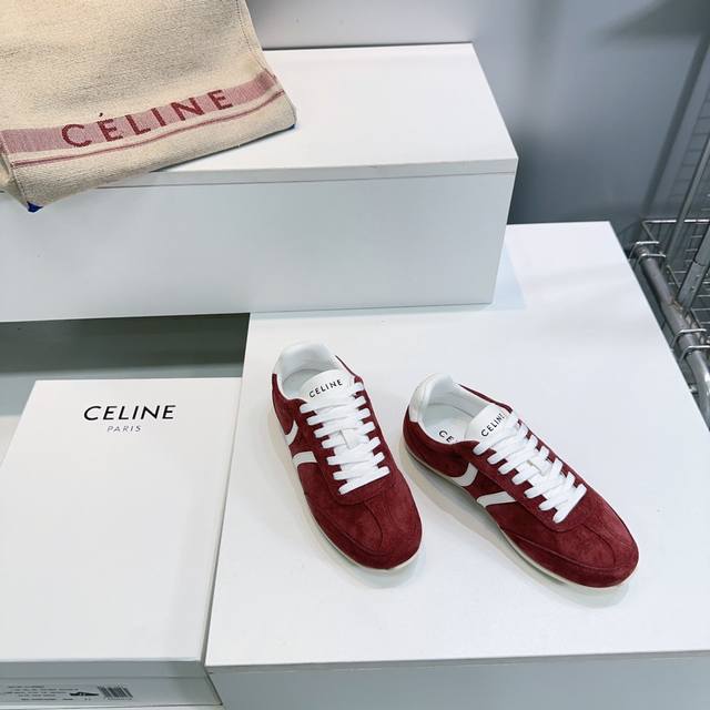 出厂 Celine思琳赛琳Celine Runner 有Celine标志运动鞋侧面凹印鞋面压印Celine标志厚底面包鞋2025春夏新款女凯旋门徽标系带3568