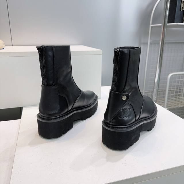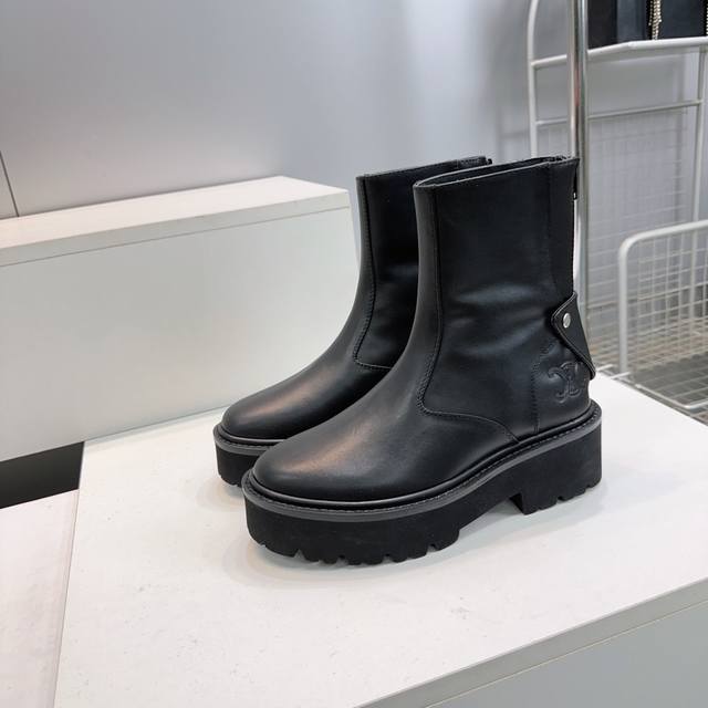 高品质出厂 !顶级品质Celine赛琳25Ss秋冬凯旋门经典复古松糕厚底系带、扣带马丁靴短靴系列!这个秋冬为女神们专属定制的一系列潮流单品!系带厚底增高的设计版型超正、当季流行的时髦潮鞋,可盐可甜的时尚简约风,满分的搭配神器! DDD 鞋面采用进口小牛皮 DDD 内里垫脚羊皮 DDD 原版开模防滑耐磨橡胶大底! DDD 码数:35-42 40 41 42订做不退换 DDD 配原版包装 DDD