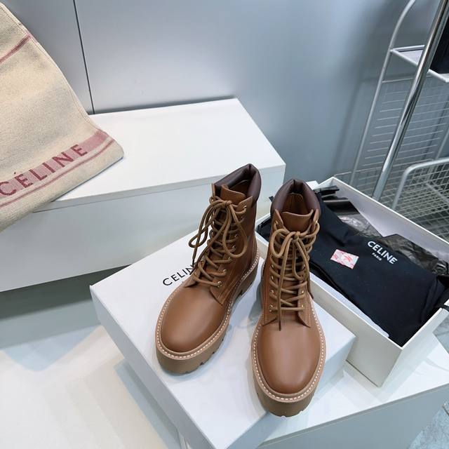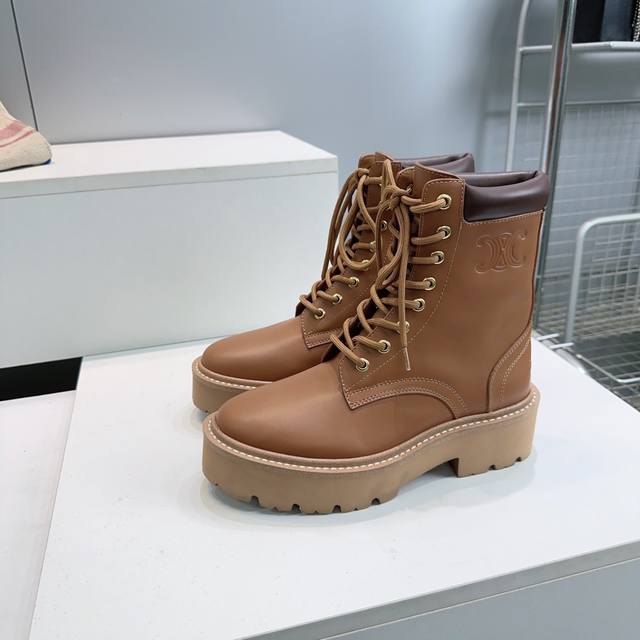 / 高品质出厂 !顶级品质Celine赛琳25Ss秋冬凯旋门经典新款松糕厚底增高无敌显瘦马丁靴系带短靴!松糕厚底上脚超级帅气超级酷!秀气又不失帅气,配牛仔裤绝绝子绝