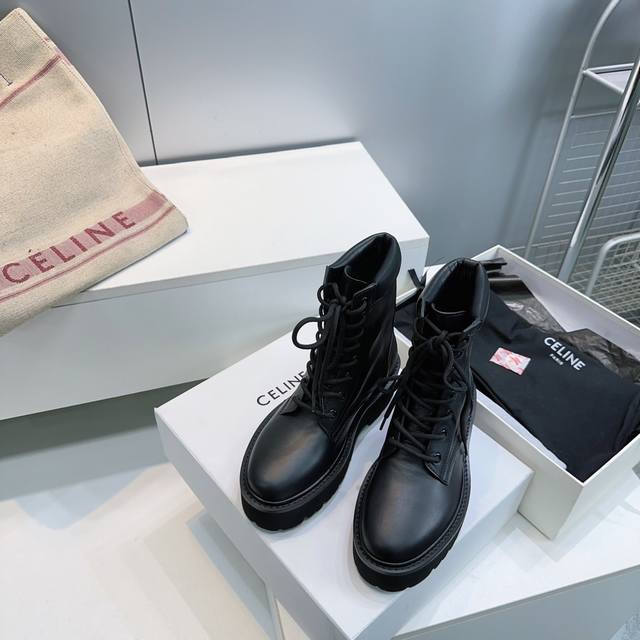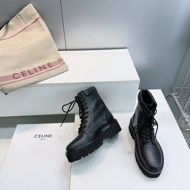 / 高品质出厂 !顶级品质Celine赛琳25Ss秋冬凯旋门经典新款松糕厚底增高无敌显瘦马丁靴系带短靴!松糕厚底上脚超级帅气超级酷!秀气又不失帅气,配牛仔裤绝绝子绝