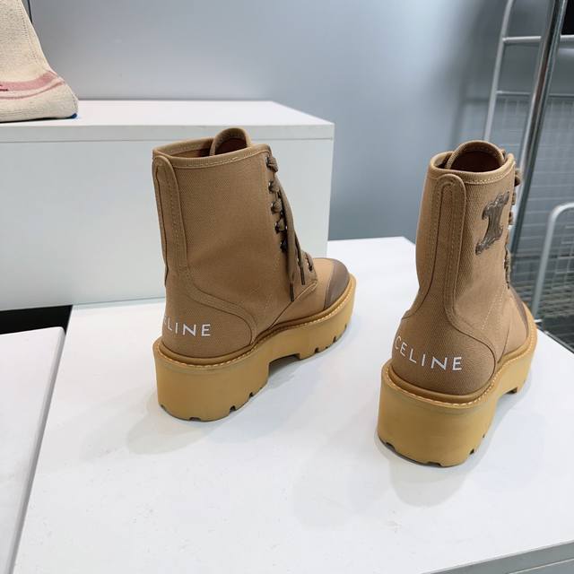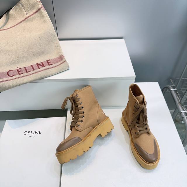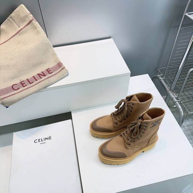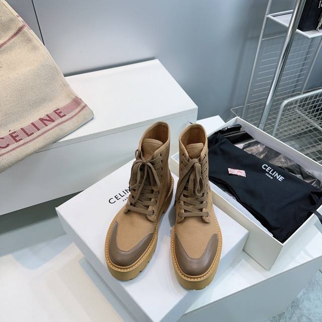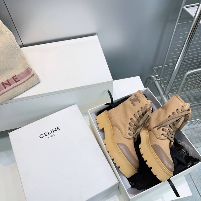高品质出厂 !顶级品质Celine赛琳25Ss秋冬经典复古松糕厚底系带马丁靴短靴!这个秋冬为女神们专属定制的一款潮流单品!系带厚底增高的设计版型超正、当季流行的时髦潮鞋,可盐可甜的时尚简约风,满分的搭配神器! DDD 鞋面采用进口高密度帆布拼接小牛皮 DDD 内里帆布,垫脚羊皮 DDD 原版开模防滑橡胶大底! DDD 码数:35-42 40 41 42订做不退换 DDD 配原版包装 DDD