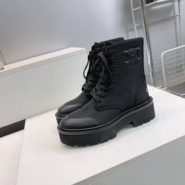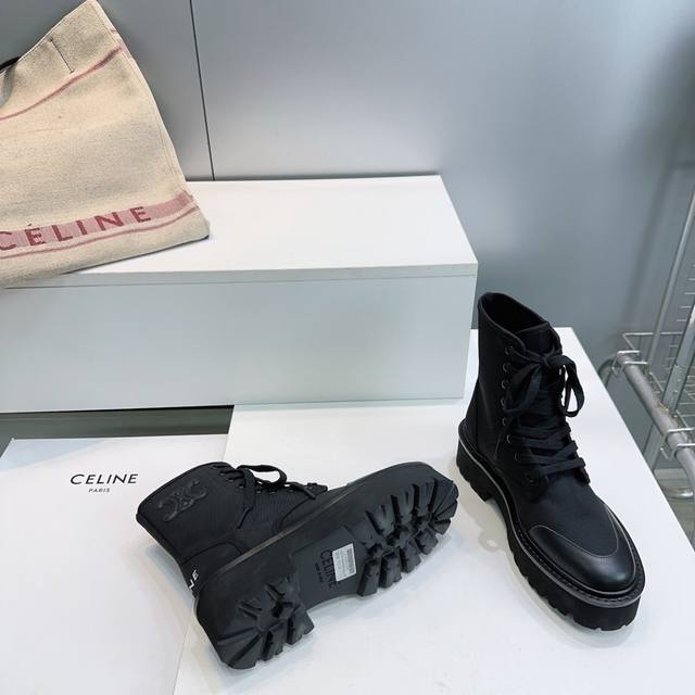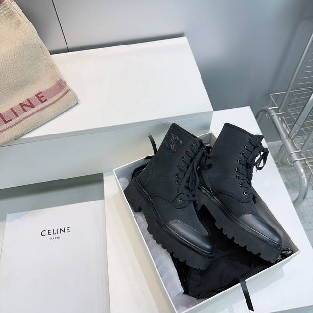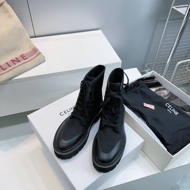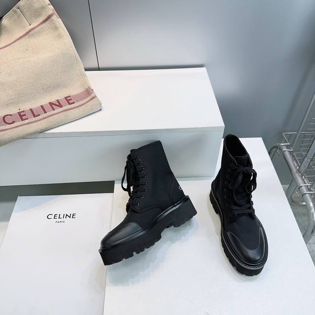 高品质出厂 !顶级品质Celine赛琳25Ss秋冬经典复古松糕厚底系带马丁靴短靴!这个秋冬为女神们专属定制的一款潮流单品!系带厚底增高的设计版型超正、当季流行的时髦潮鞋,可盐可甜的时尚简约风,满分的搭配神器! DDD 鞋面采用进口高密度帆布拼接小牛皮 DDD 内里帆布,垫脚羊皮 DDD 原版开模防滑橡胶大底! DDD 码数:35-42 40 41 42订做不退换 DDD 配原版包装 DDD