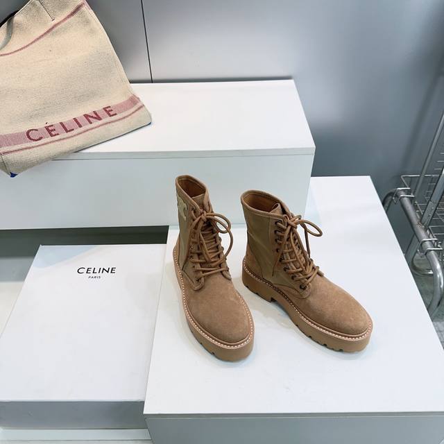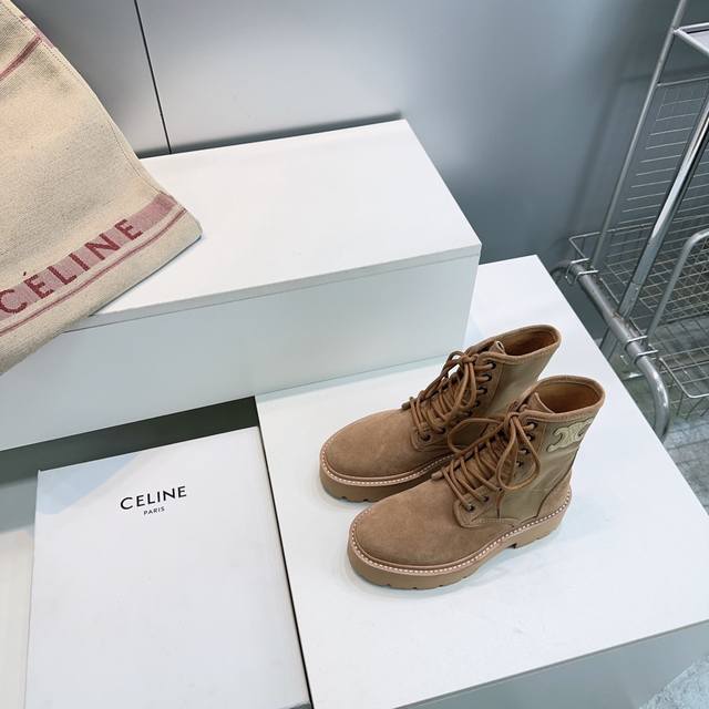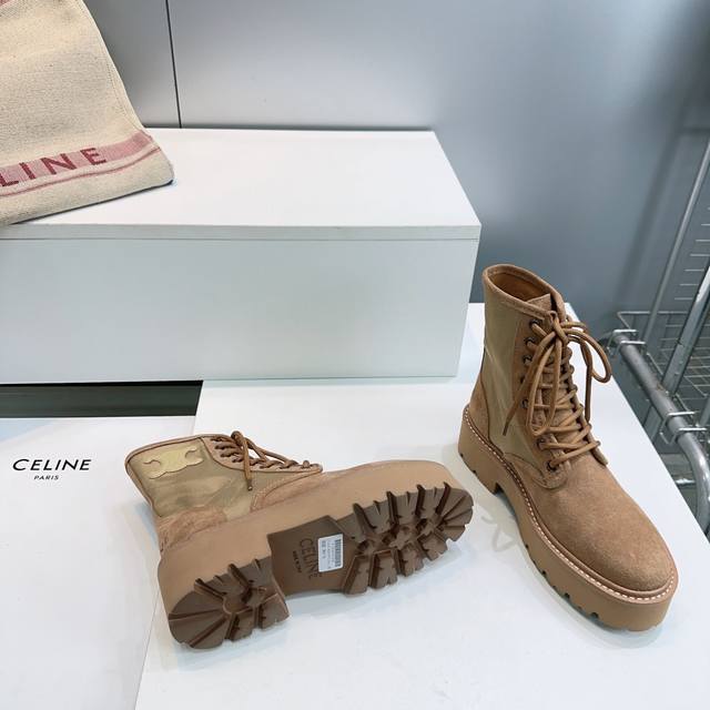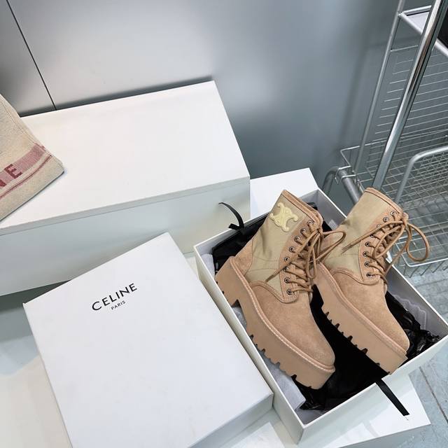 高品质出厂 !顶级品质Celine 赛琳25Ss秋冬凯旋门经典复古松糕厚底系带马丁靴短靴!这个秋冬为女神们专属定制的一款潮流单品!系带厚底增高的设计版型超正、当季流行的时髦潮鞋,可盐可甜的时尚简约风,满分的搭配神器! DDD 鞋面采用进口高密度帆布拼接牛反绒 DDD 内里帆布,垫脚羊皮 DDD 原版开模防滑橡胶大底! DDD 码数:35-42 40 41 42订做不退换 DDD 配原版包装 DDD