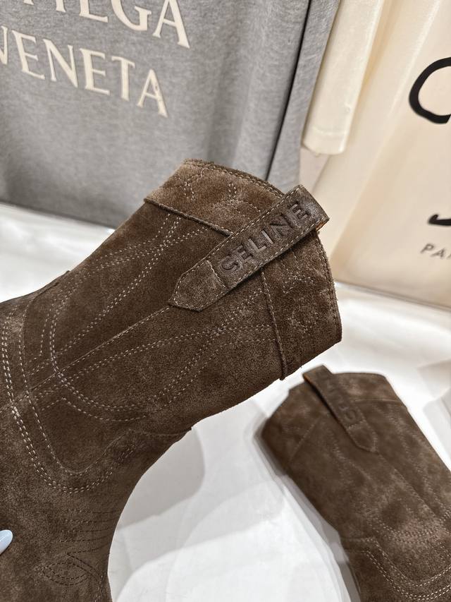 高版本出厂 DDD Celine*赛琳F032 2025Ss秋冬专柜新款英伦风复古高跟短靴骑士靴 DDD 集现代、传统与酷炫风格与一身。其标志性设计采用了上乘材质,具有敏锐独道的细节设计,成品极具流行风潮,能承受时间的检验,早秋力推单品,搭配连衣裙,Skinny Jeans潮人必备 DDD 进口小牛皮 高丝光反绒皮 DDD 超细腻的牛皮内里 DDD 原版层皮包跟意大利奢华真皮大底 DDD 全皮制作只为高端定制跟高6.5Cm左右Size:35-39 40.41订做不退换 DDD