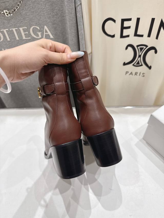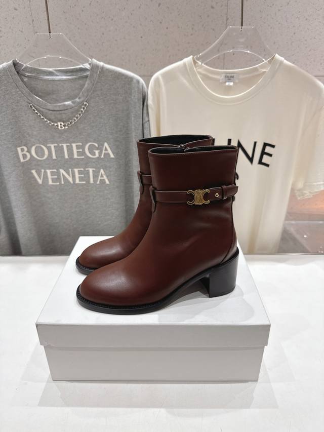 高版本出厂 Celine* 赛琳F052 2025Ss秋冬新品简约复古风高跟短靴 复古简约又时尚 上脚舒适百搭!系带饰有Celine Triomphe标志金属件,可拆卸系带,打造多样穿法 鞋面:采用原版小牛皮 内里 垫脚:进口山羊皮 跟高:6.5Cm 大底:意大利进口真皮大底! 码数:35-39 40订做不退换