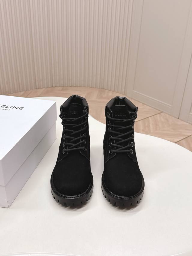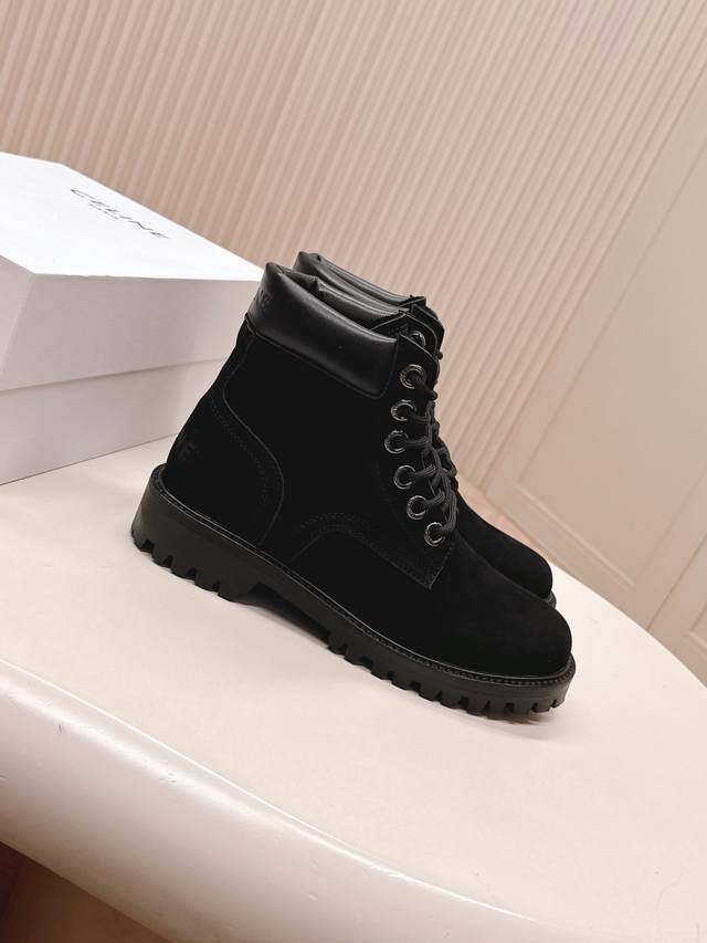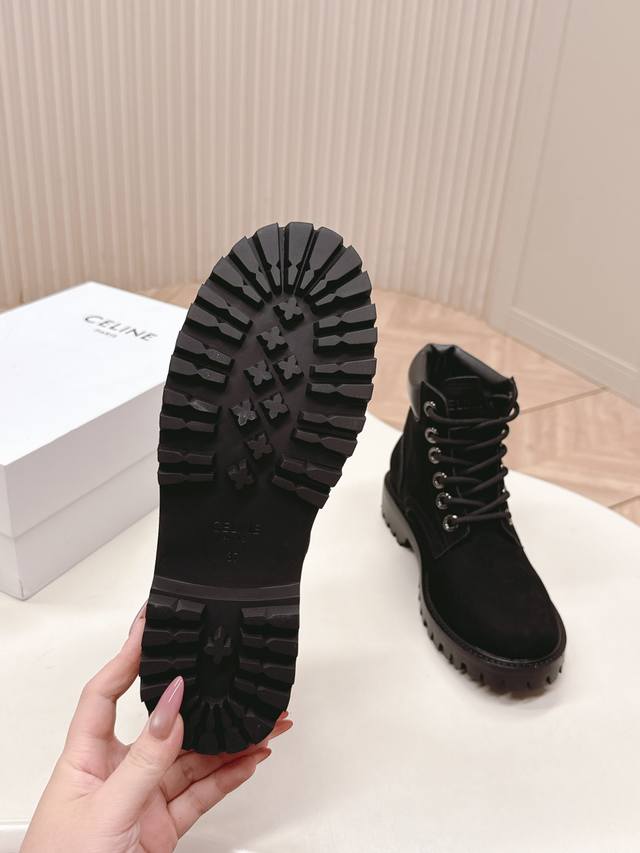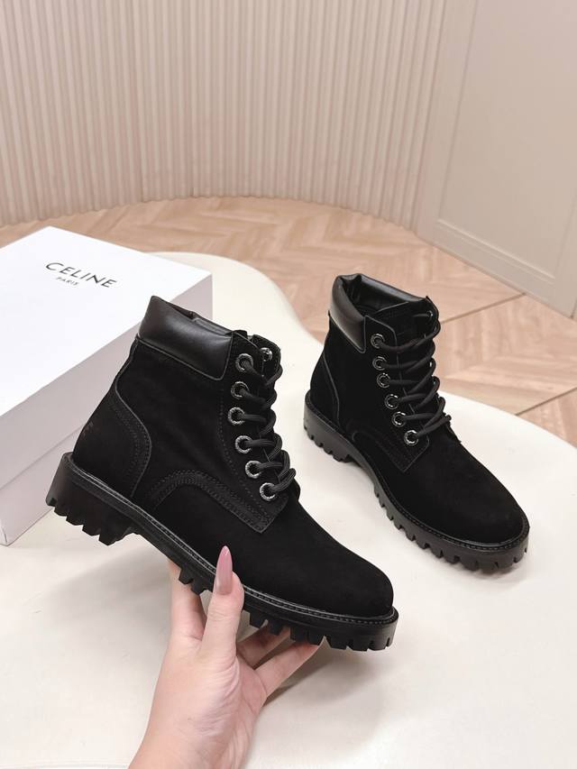 高版 Celine 经典马丁靴 大黄靴 复古圆头战靴 又帅又酷 复古做旧 鞋面采用进口牛反绒,质感超级奈斯,内里牛皮,原版一比一开模大底!上脚非常舒适 大头的设