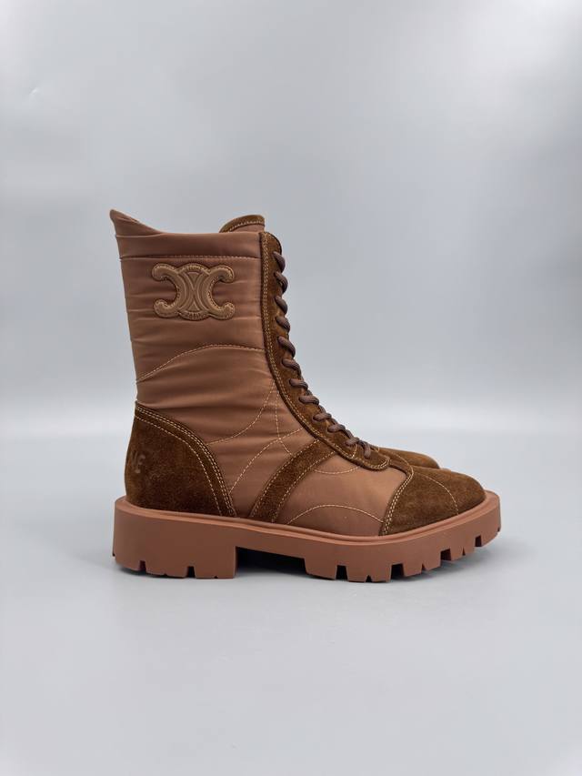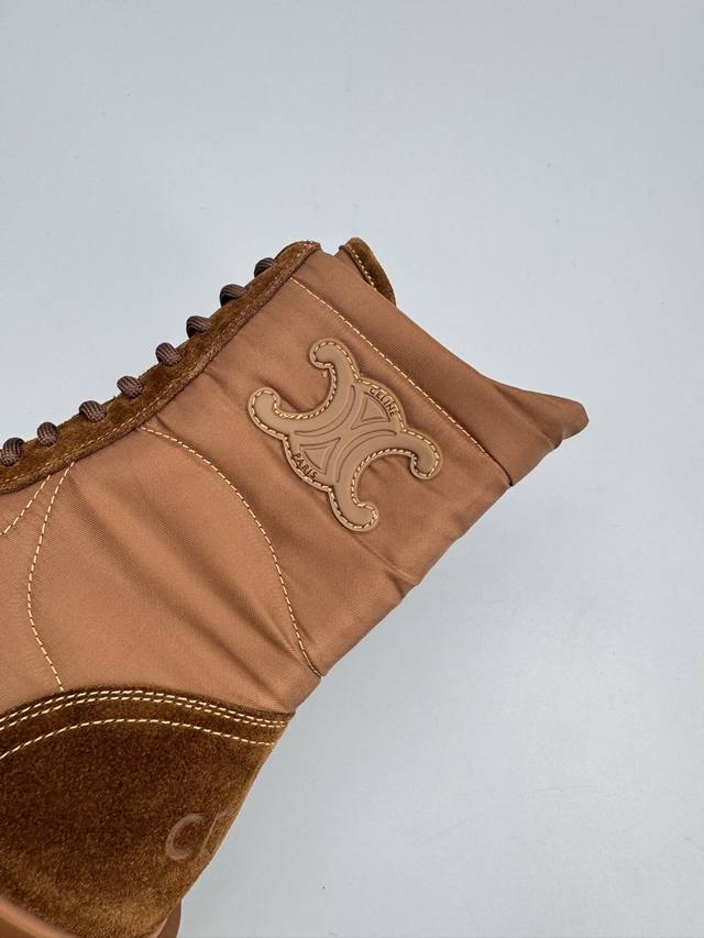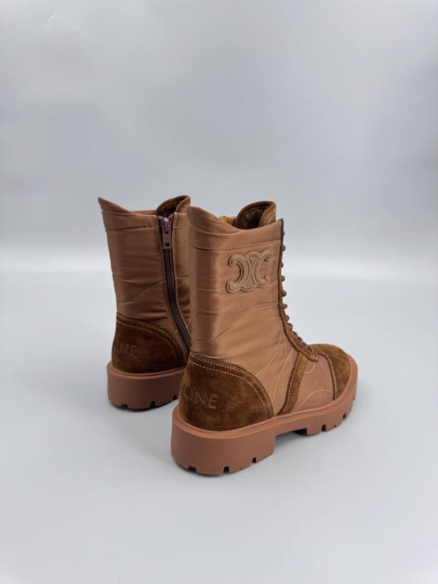 Celine*赛琳 2025 2025秋冬新品 专柜最新款绑带短靴马丁靴系列 鞋面 :原版定制牛反绒+特殊尼龙防水布面 内里...