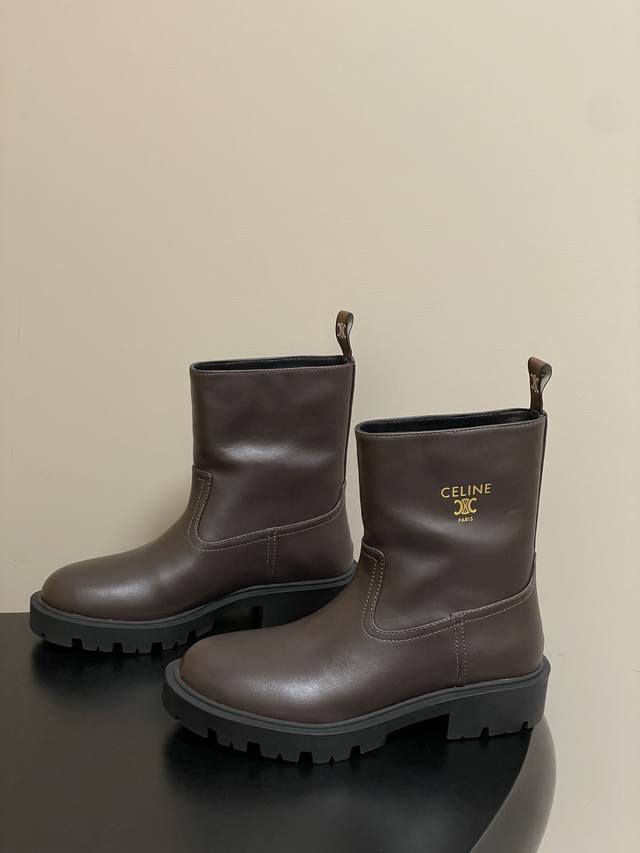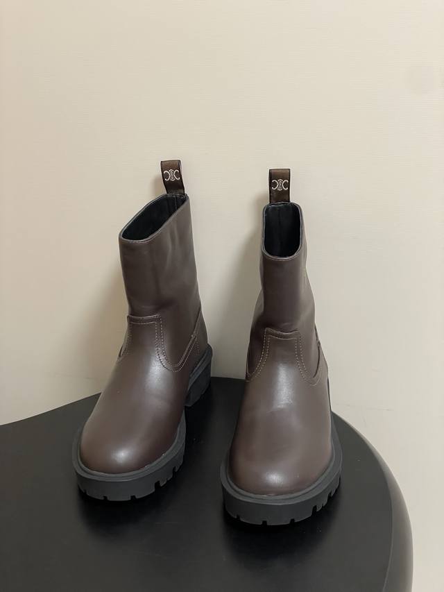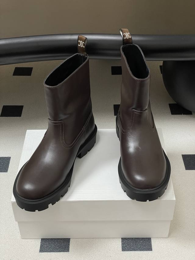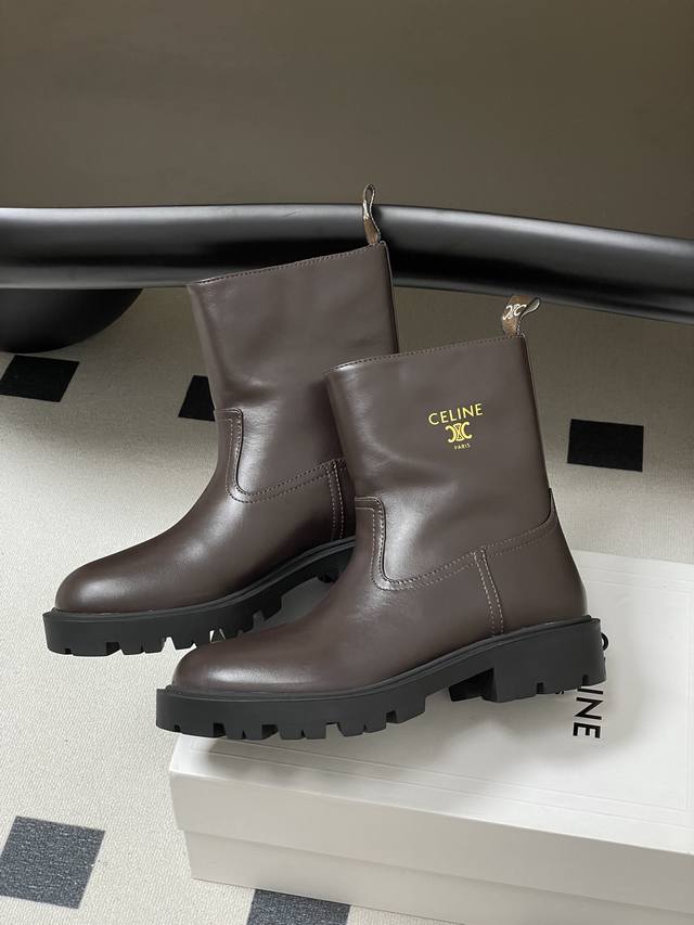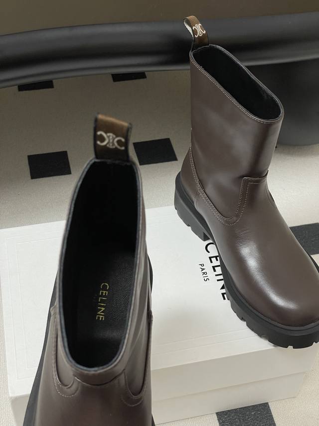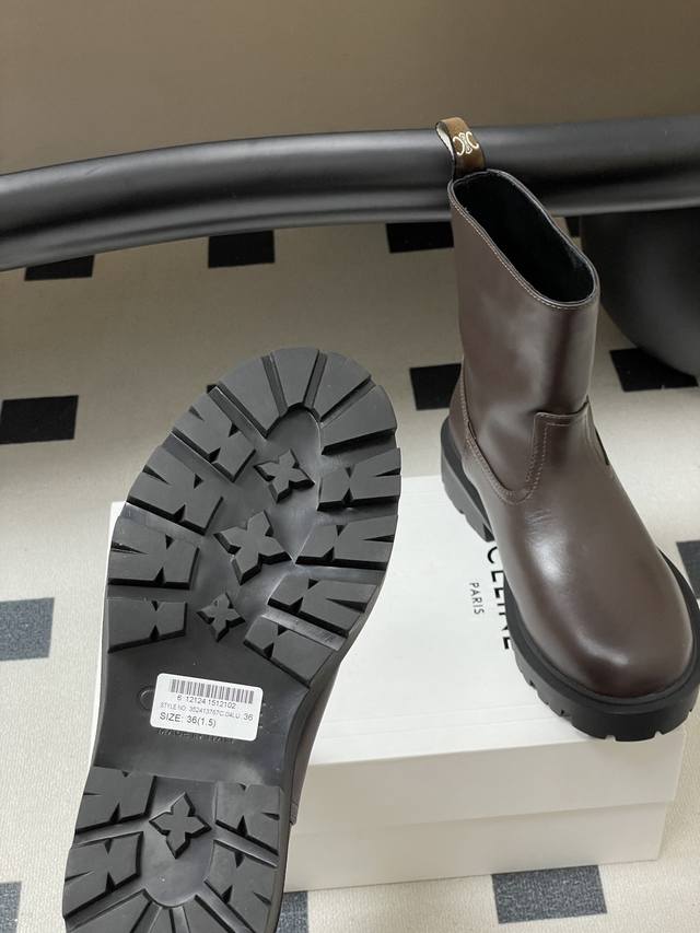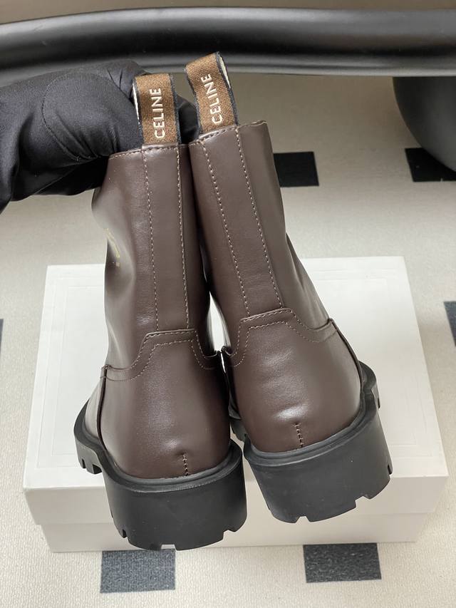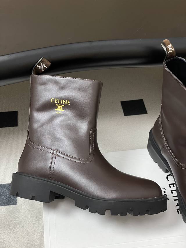 2025秋冬新款Celine 赛琳 Bumargaret高筒靴 短靴系列 凯旋门切尔西短靴直筒骑士靴厚底高靴 DDD 踏入秋冬 时尚达人们的鞋柜里必备靴子系列 DDD 鞋身巧妙融入经典的凯旋门元素 精致无比让Celine的标志性风格展露无遗 。 DDD 圆头设计,复古又百搭。厚底橡胶外底,具有良好的抓地力,同时带有一定增高效果。融合了复古英伦风与现代时尚感,可搭配多种风格的服饰,是时尚圈经典且不易过时的款式。 DDD 鞋面:牛皮 DDD 内里垫脚:羊皮 DDD 跟高:3.5Cm DDD 鞋底:开模橡胶大底