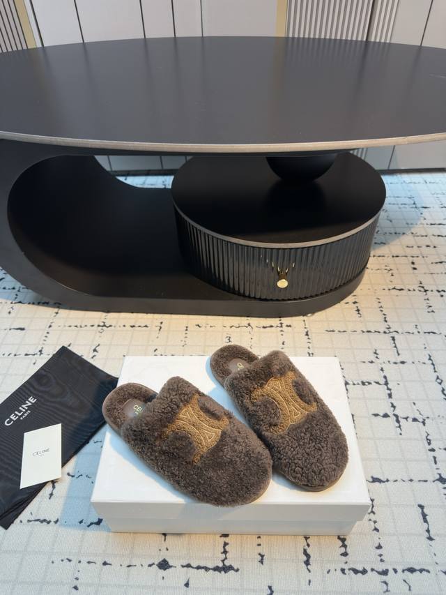 Celin*塞琳 25Ss 新品 一脚蹬羊毛拖鞋 这一季的赛琳又让我重新爱了它一次! 这季节美鞋太多这款毛拖真的是让我无法自拔真太可爱了~ 毛茸茸的羊毛是选用欧