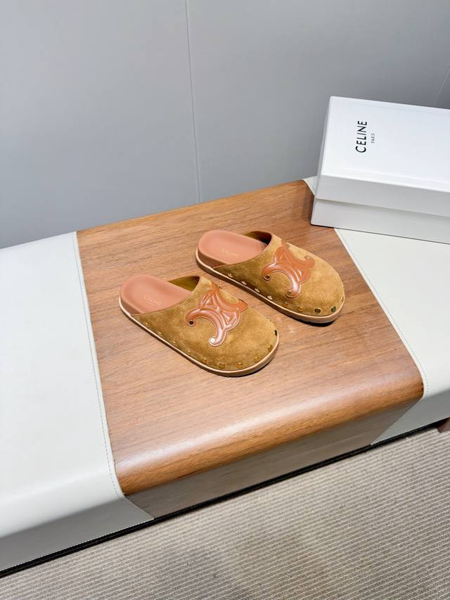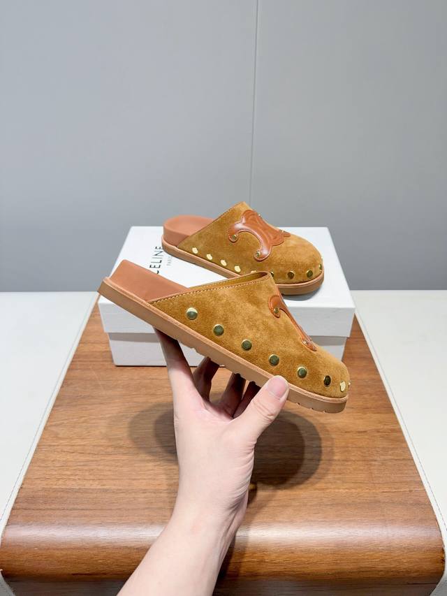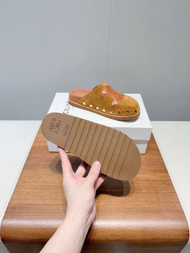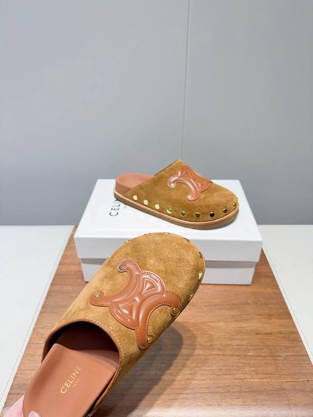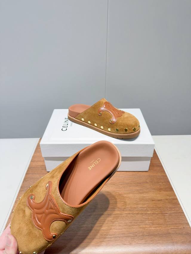 Celine 赛琳25 春夏新款 凯旋门 柳钉 勃肯 包头拖 法式咖色 像是左岸咖啡馆的暖调 经典又迷人 轻松适配各种夏日Look...